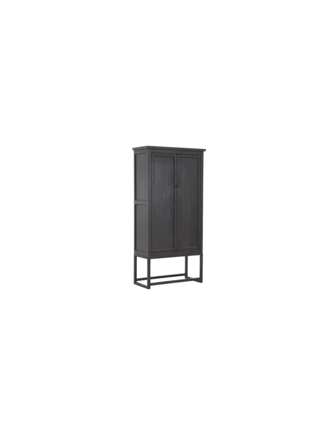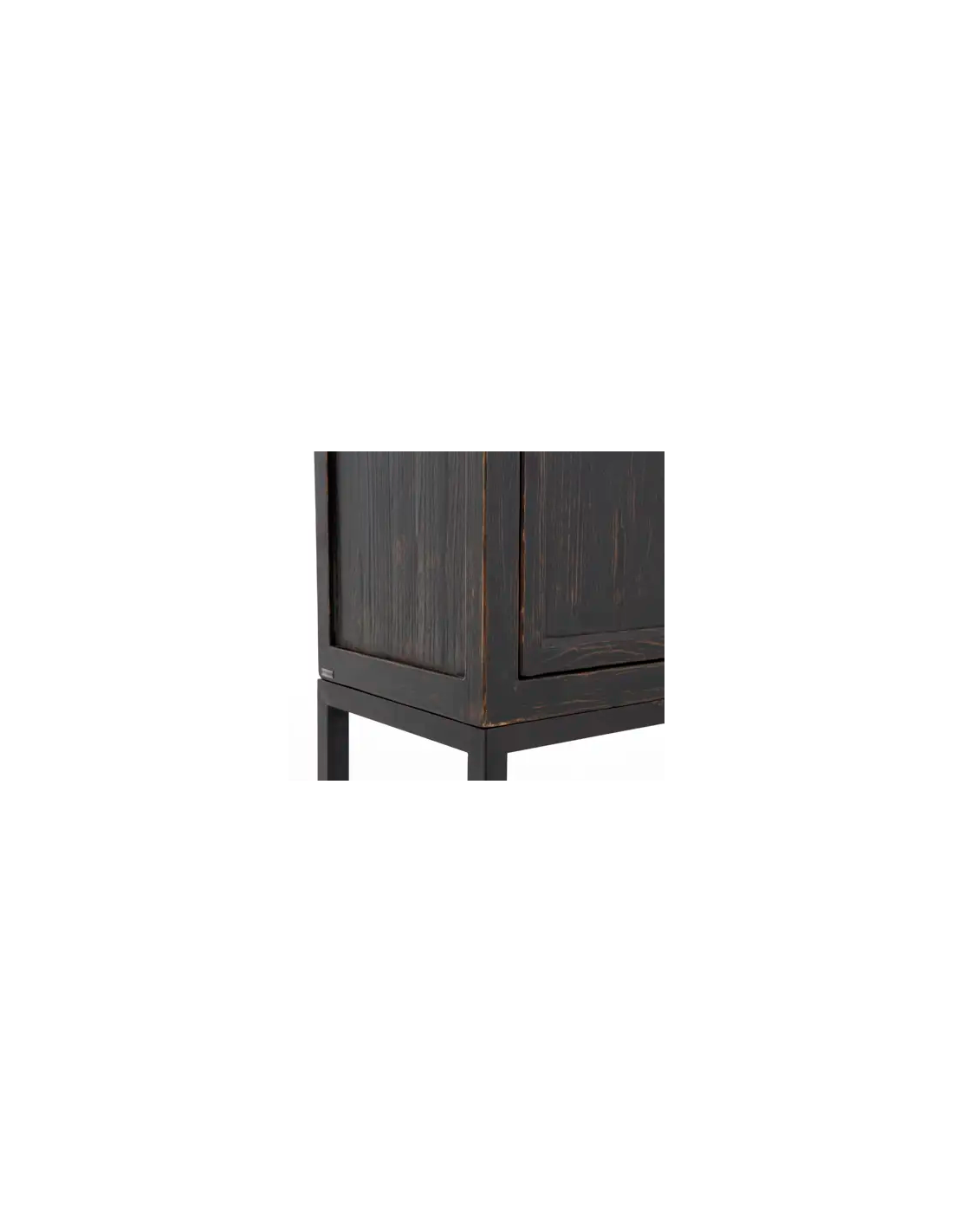FLAMANT VERBENA Vitrineskab udført i et rustikt design fremstillet af sortlakeret metal og mørkebrun lakeret genanvendt fyrretræ. Vitrineskabet indeholder 4 hylderum og måler 220 cm i højden og 105 x 50 cm i bredde og dybde.
