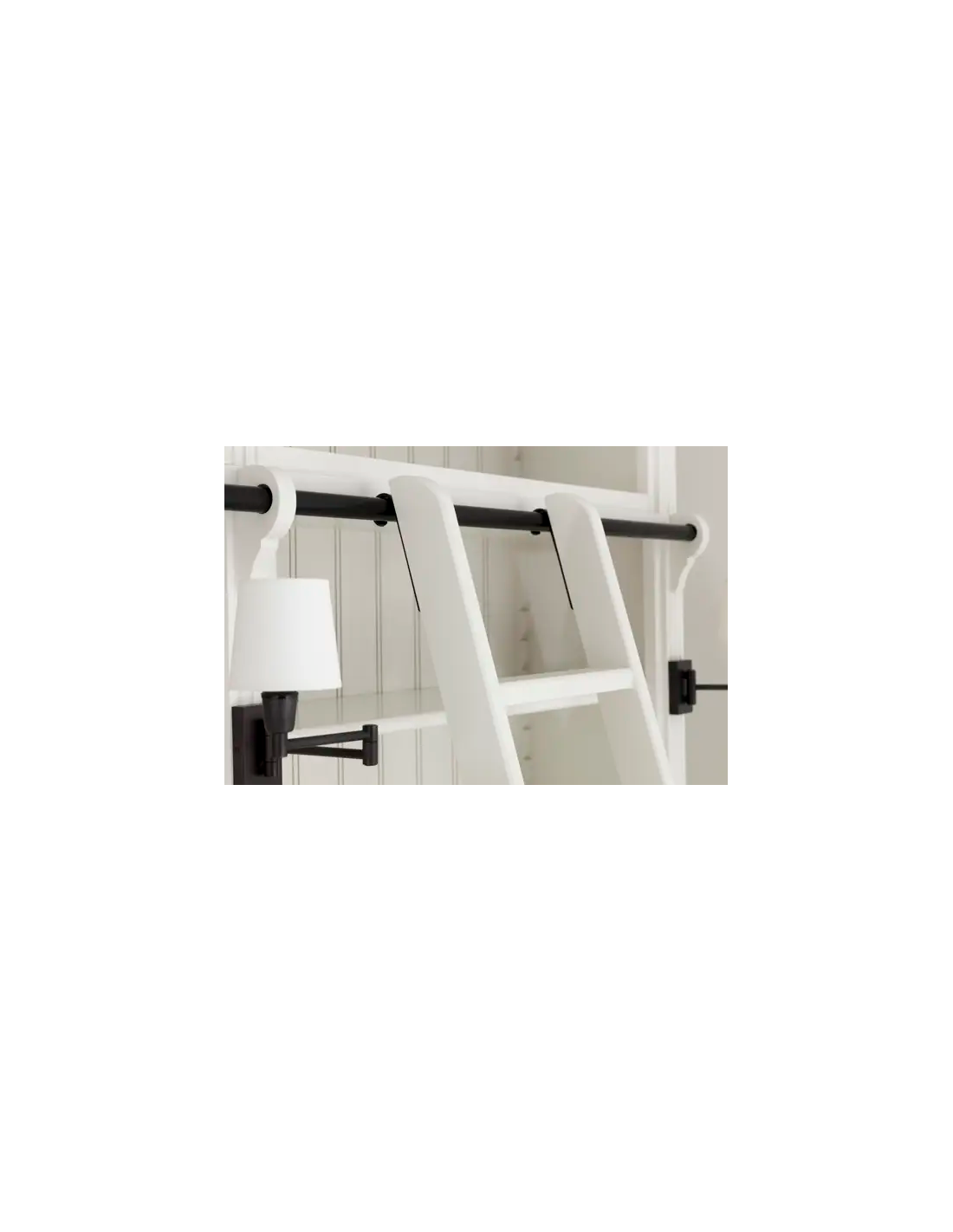 FLAMANT BALMORE Vitrineskab udført i et design fremstillet af antik hvidlakeret fyrretræ og sortlakeret jern. Vitrineskabet kommer med 1 stige samt 2 lamper der sidder på selve vitrineskabet (Ekskl. skærme). Stigen kan flyttes til siderne via den sorte jernstang. I vitrineskabet er der 5 åbne hylderum med justerbare hylder. I bunden forefindes 2 skabslåger, der gemmer på 2 hylderum. Vitrineskabet måler 248 cm i højden og 124 x 44 cm i bredde og dybde.