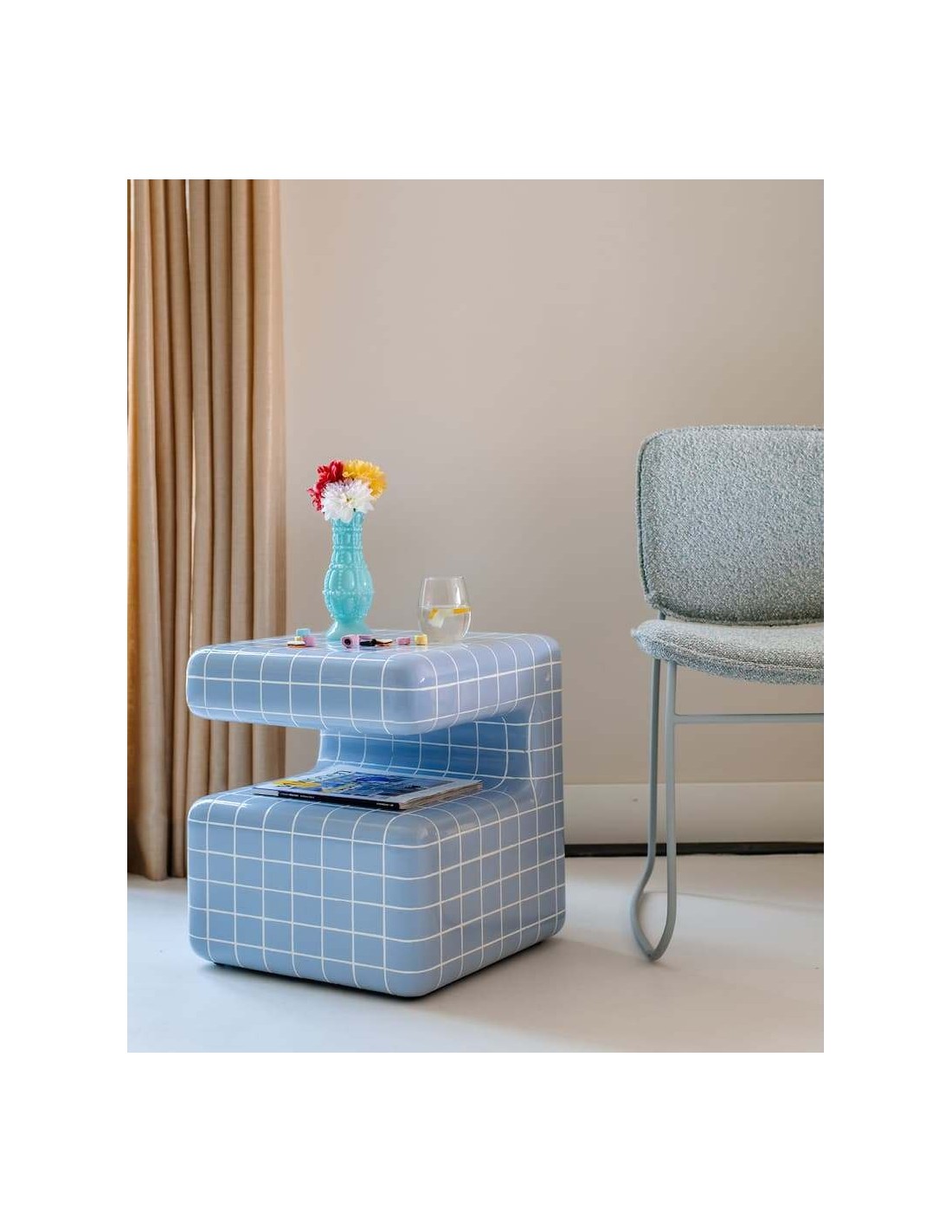 TAKA Sofabord i fiberglas og ler H49,5 x B45 x D45 cm - Blå