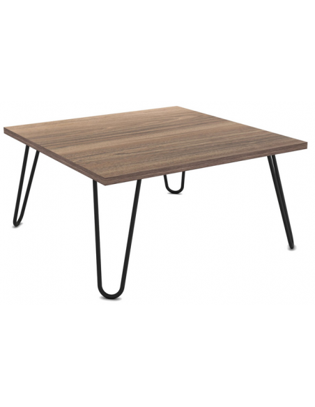 VINDE Sofabord udført i et moderne design af sortlakeret metal og valnøddebrun møbelplade. Sofabordet måler 30 cm i højden og 60 x 60 cm i bredde og dybde.