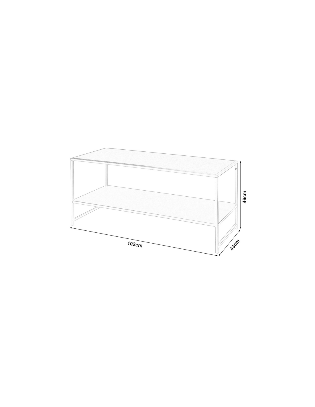 ROUKO Sofabord udført i et moderne design af sortlakeret stål og med hylde. Sofabordet måler 46 cm i højden og 102 x 43 cm i bredde og dybde.