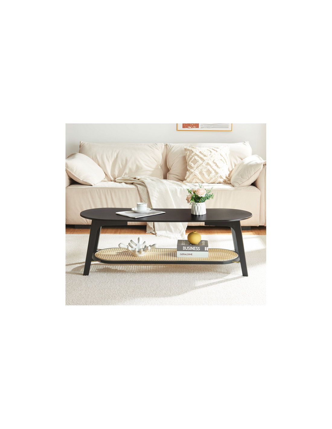 TAIVA Sofabord i bambus og polyrattan H40 x B120 x D43 cm - Sort/Natur