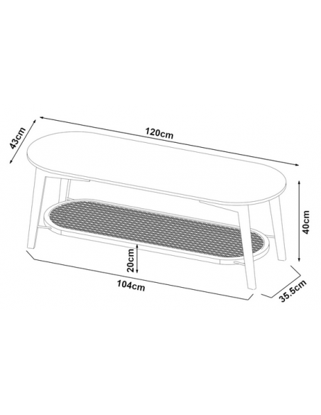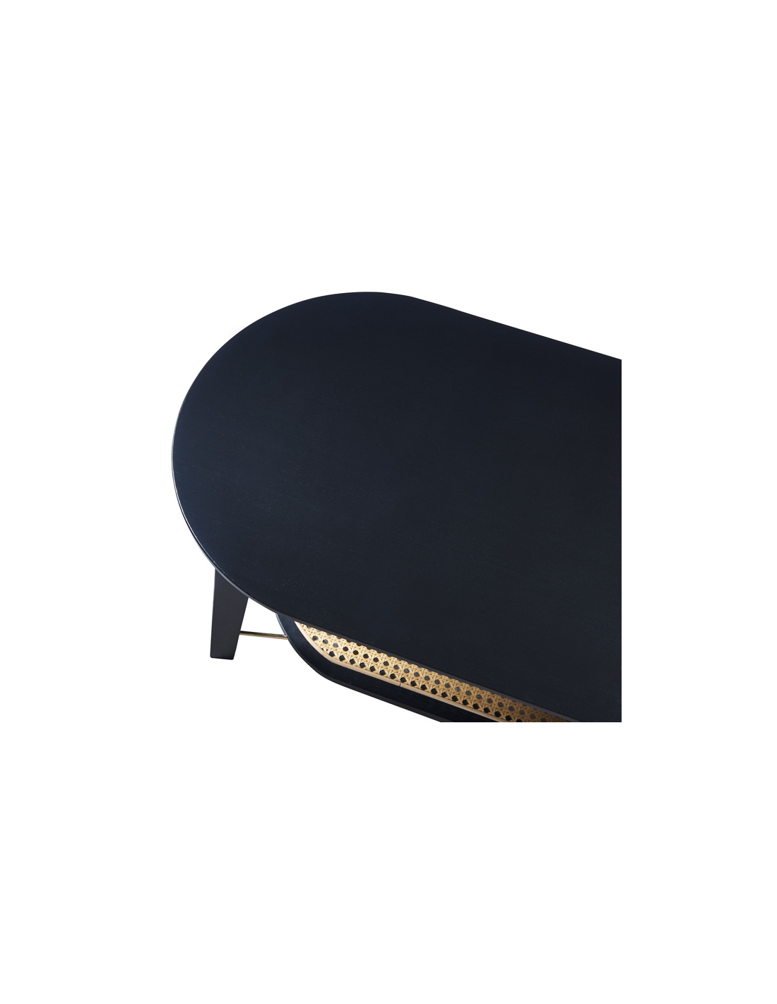TAIVA Sofabord udført i et moderne design af sortlakeret bambus og naturfarvet polyrattan. Sofabordet måler 40 cm i højden og 120 x 43 cm i bredde og dybde.