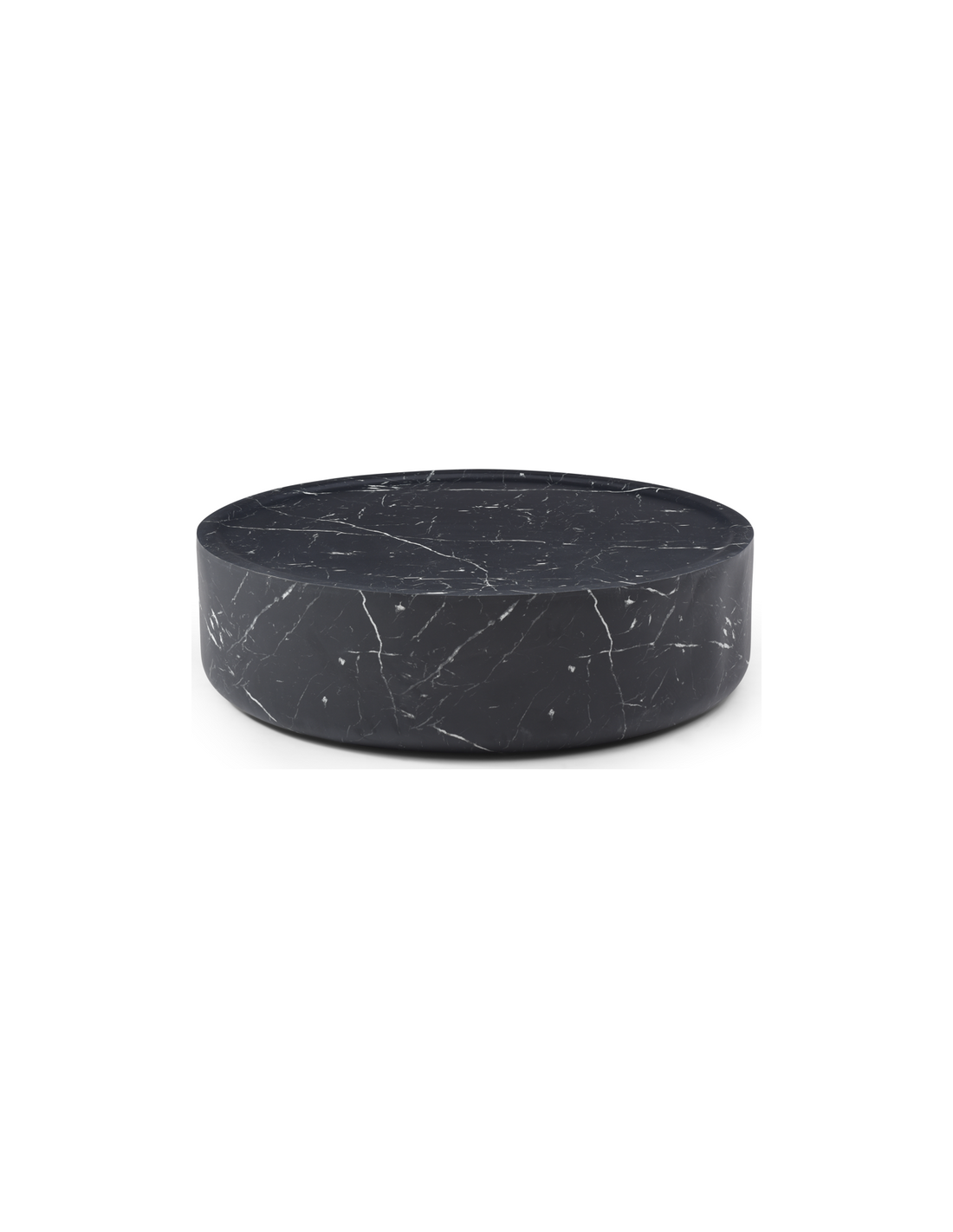 CILADRO Rundt sofabord udført i et moderne design, fremstillet i et design af sort faux marmor. Sofabordet måler 31 cm i højden og 110 cm i diameter.