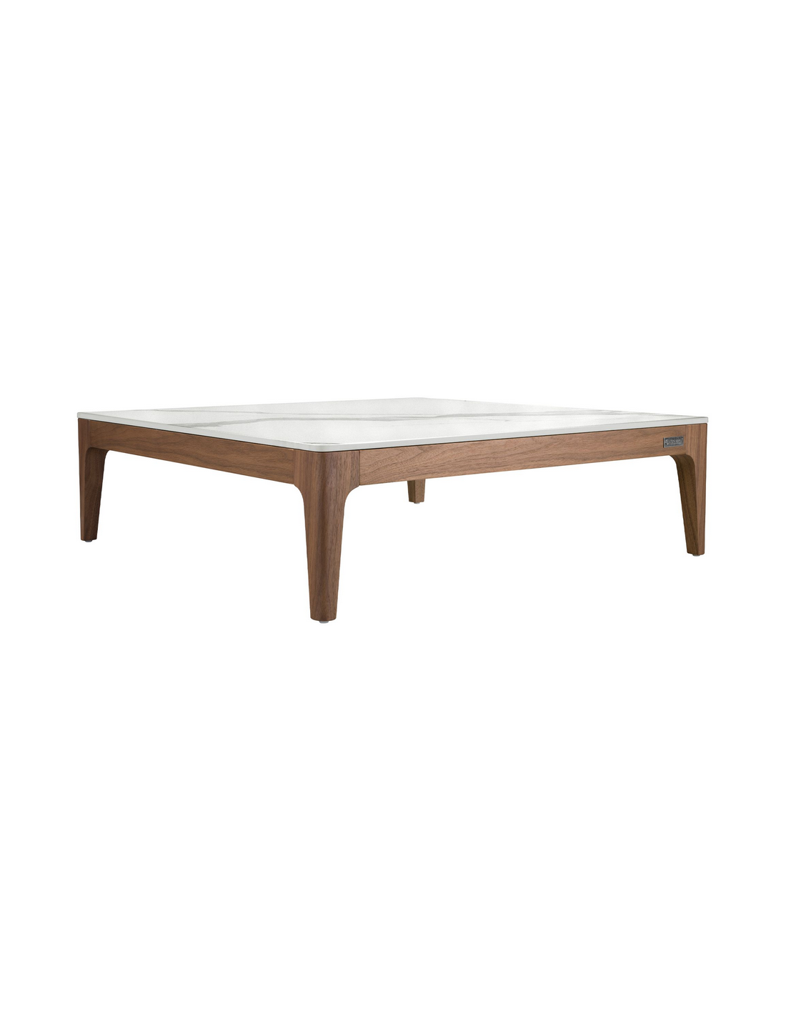 Sofabord udført i et moderne design fra Angel Cerdá. Sofabordet er fremstillet af valnøddefinér og hvid marmoriseret porcelæn. Bordet måler 30 cm i højden og 100 x 100 cm i bredde og dybde.