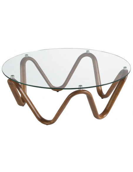 Rundt sofabord i valnøddetræ og glas H38 x Ø115 cm - Valnød/Klar