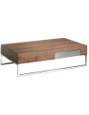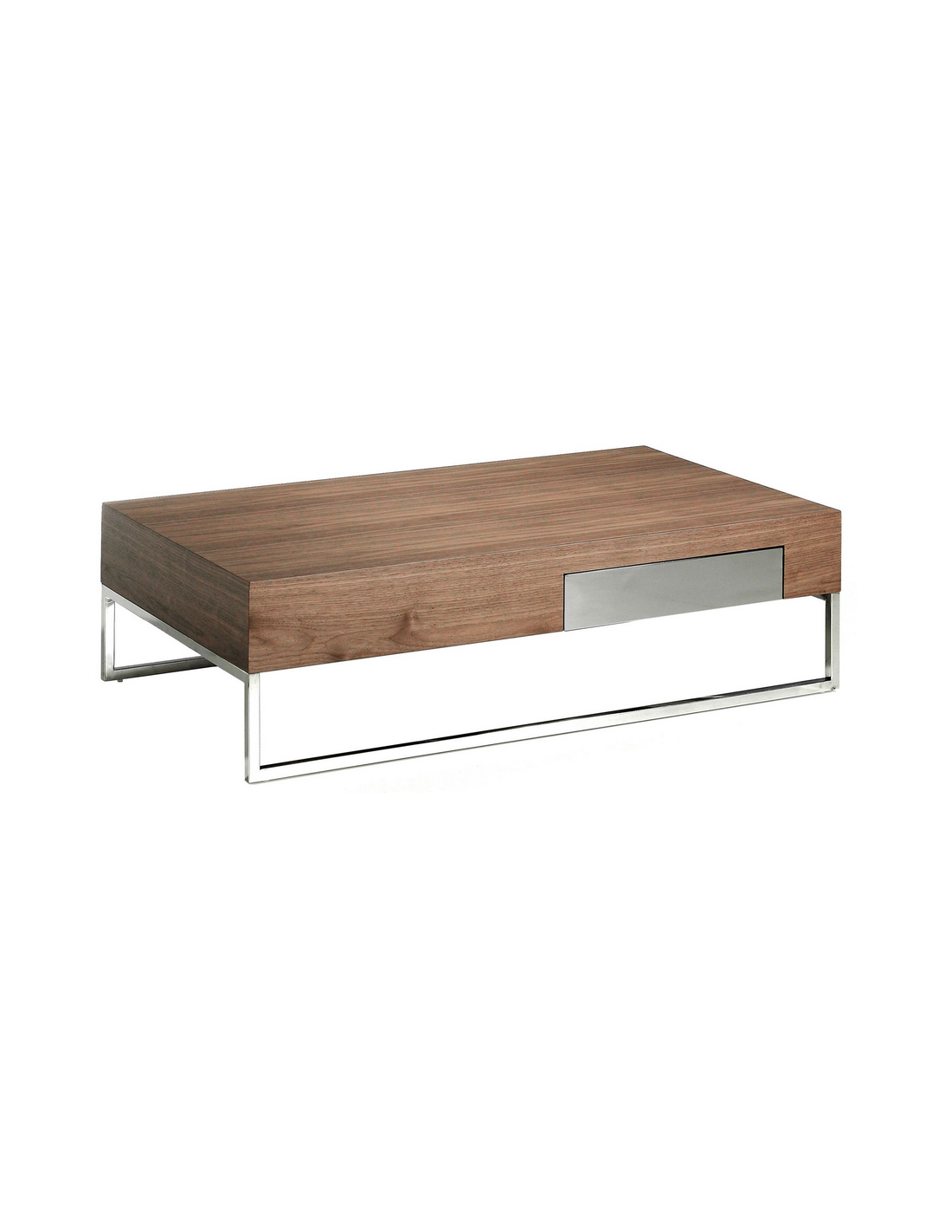 Sofabord med skuffe, udført i et moderne design fra Angel Cerdá. Sofabordet er fremstillet af valnøddefinér og kromlakeret stål. Bordet måler 33 cm i højden og 120 x 70 cm i bredde og dybde. Skuffen er med push-to-open funktion.