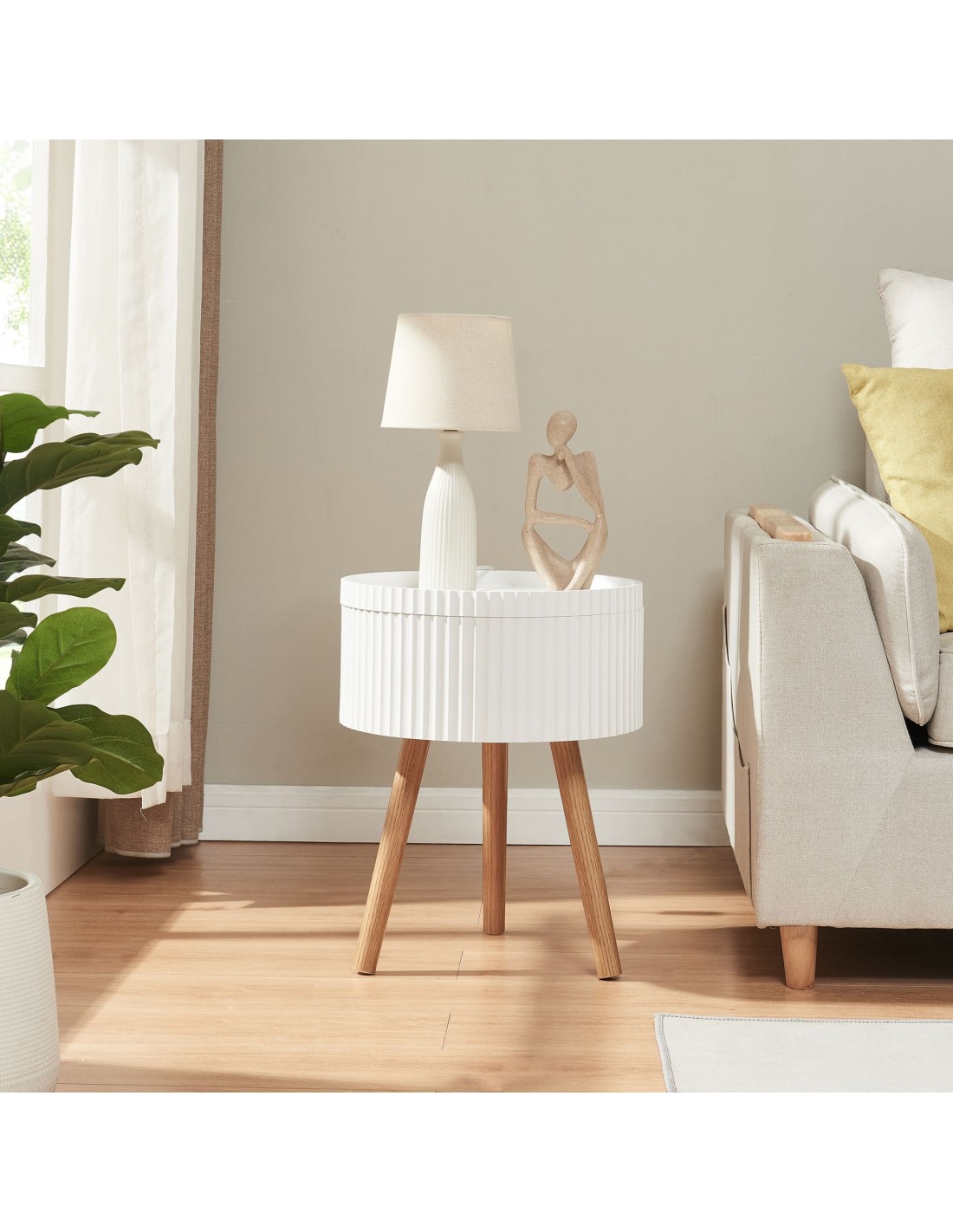 Rundt sofabord med opbevaring i bambus og MDF H48 x Ø38 cm - Hvid/Natur
