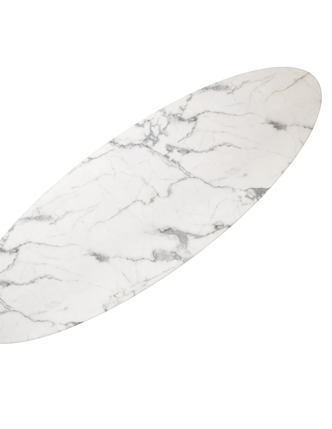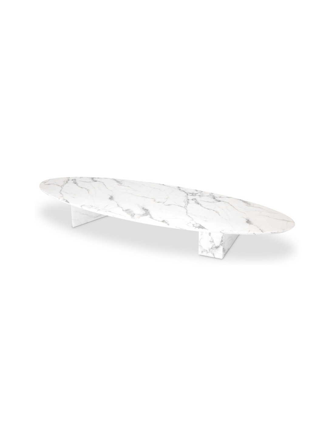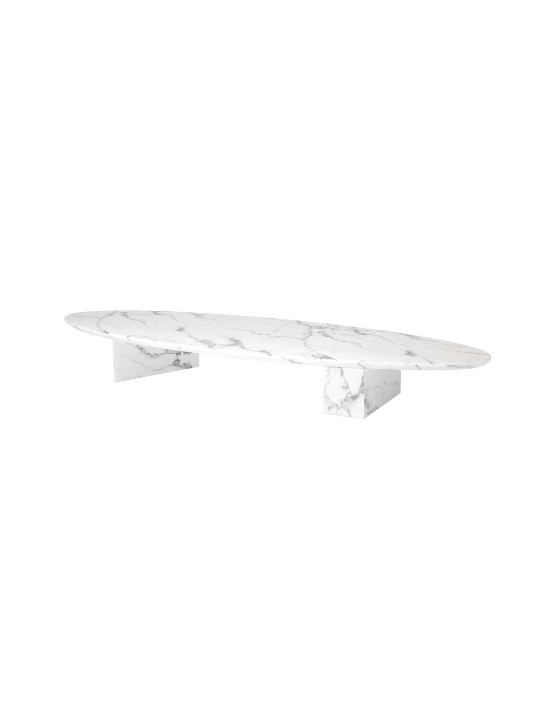Eichholtz Aurore ovalt sofabord udført i et luksuriøst og moderne design, fremstillet i hvid faux marmor sten. Sofabordet måler 28,5 cm i højden og 240 x 80 cm i bredde og dybde.