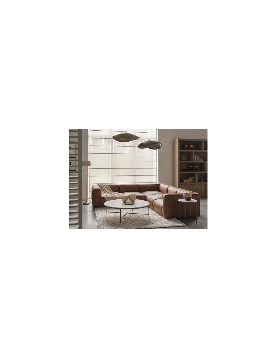 FLAMANT MARABELLE Rundt sofabord i jern og marmor Ø120 cm - Antik messing/Hvid marmor