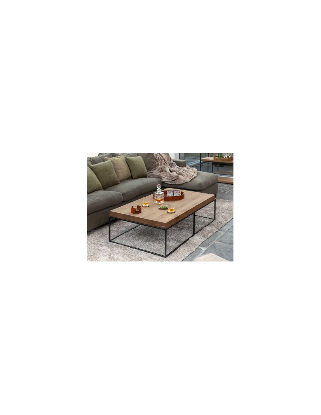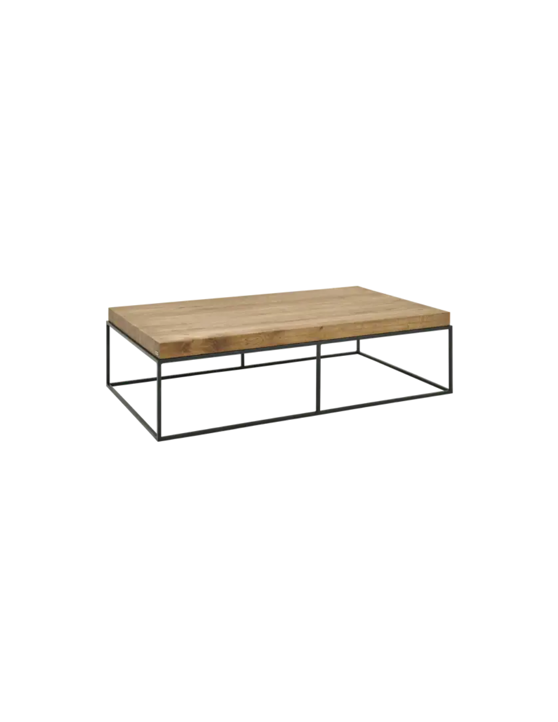 FLAMANT URBAN Sofabord udført i et rustikt design af sortlakeret metal og genanvendt egetræ. Sofabordet måler 37 cm i højden og 140 x 80 cm i bredde og dybde.