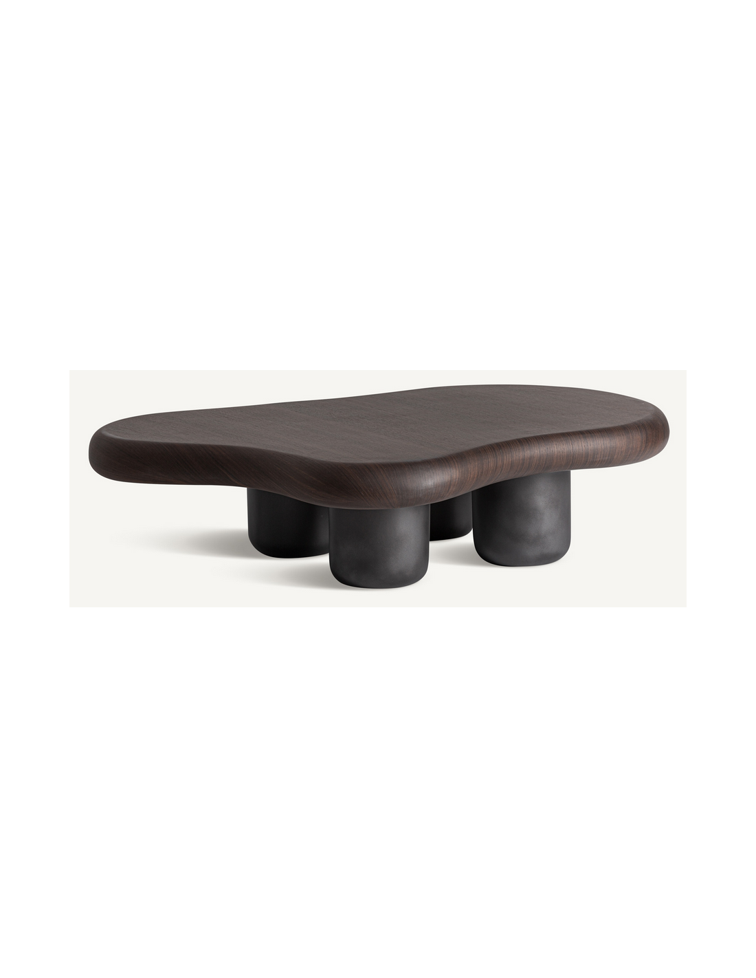 UNBEK Organisk sofabord i egetræsfinér og fiberglas 122 x 88 cm - Gråsort/Valnød
