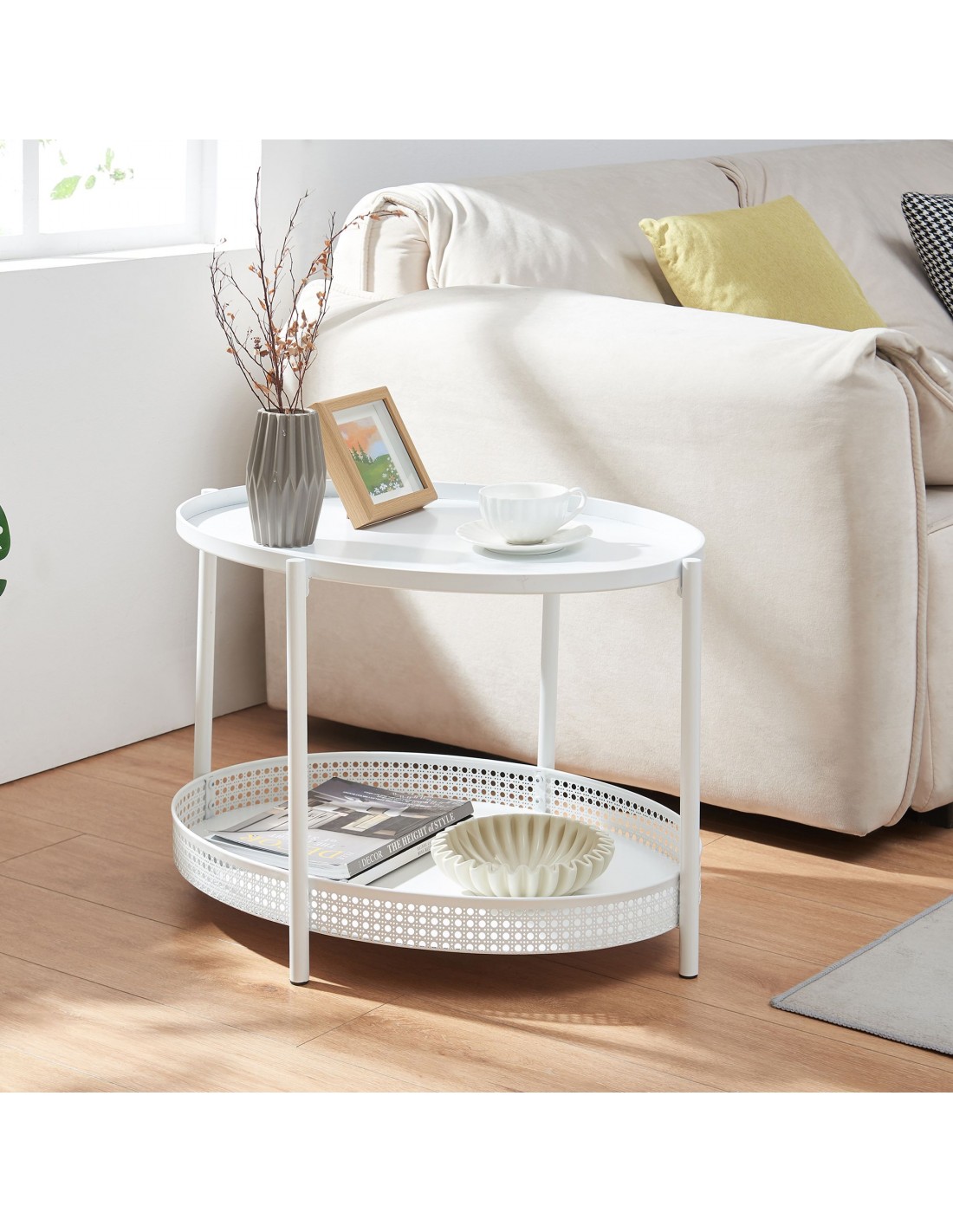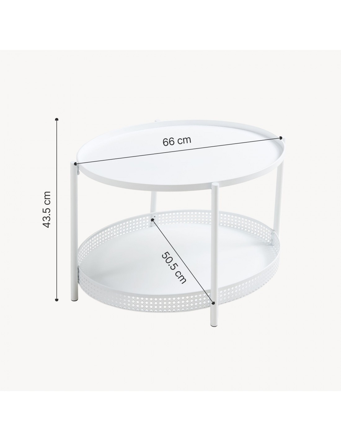 Ovalt sofabord i metal H43,5 x B66 x D50,5 cm - Hvid