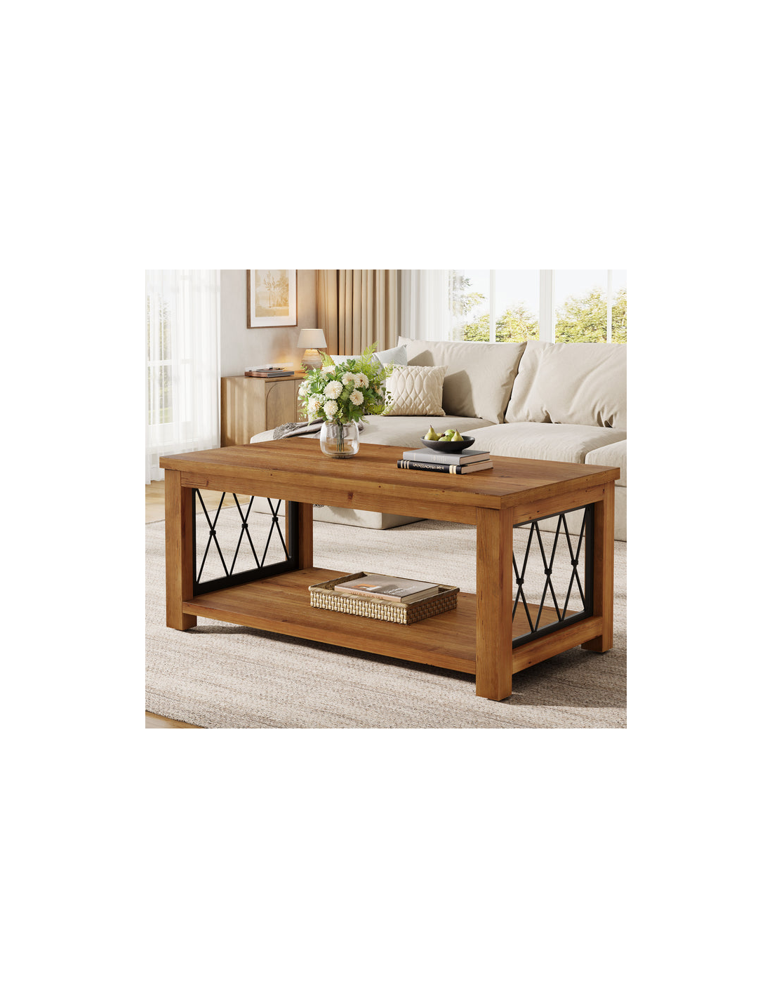 Sofabord i fyrretræ og metal 120 x 60 cm - Antik sort/Naturbrun