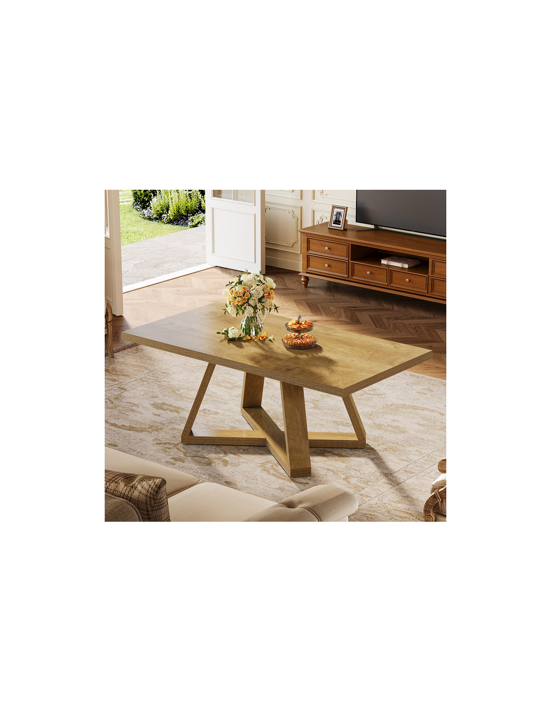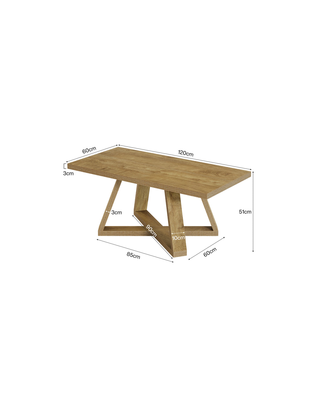 Sofabord udført i et moderne design af naturbrun møbelplade. Sofabordet måler 51 cm i højden og 120 x 60 cm i bredde og dybde.