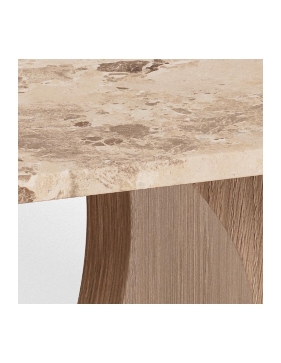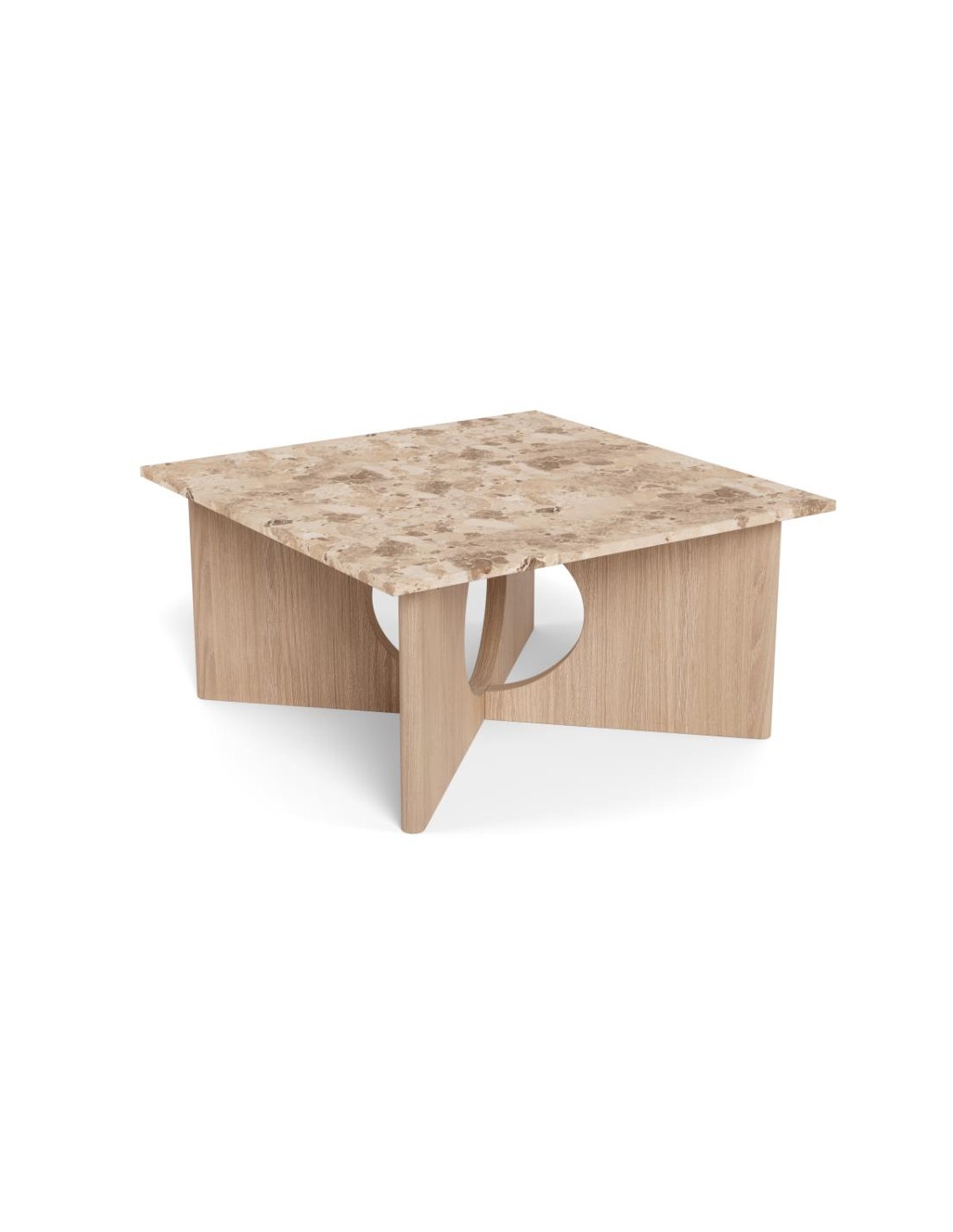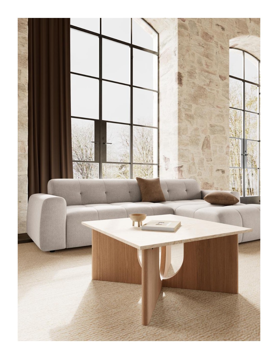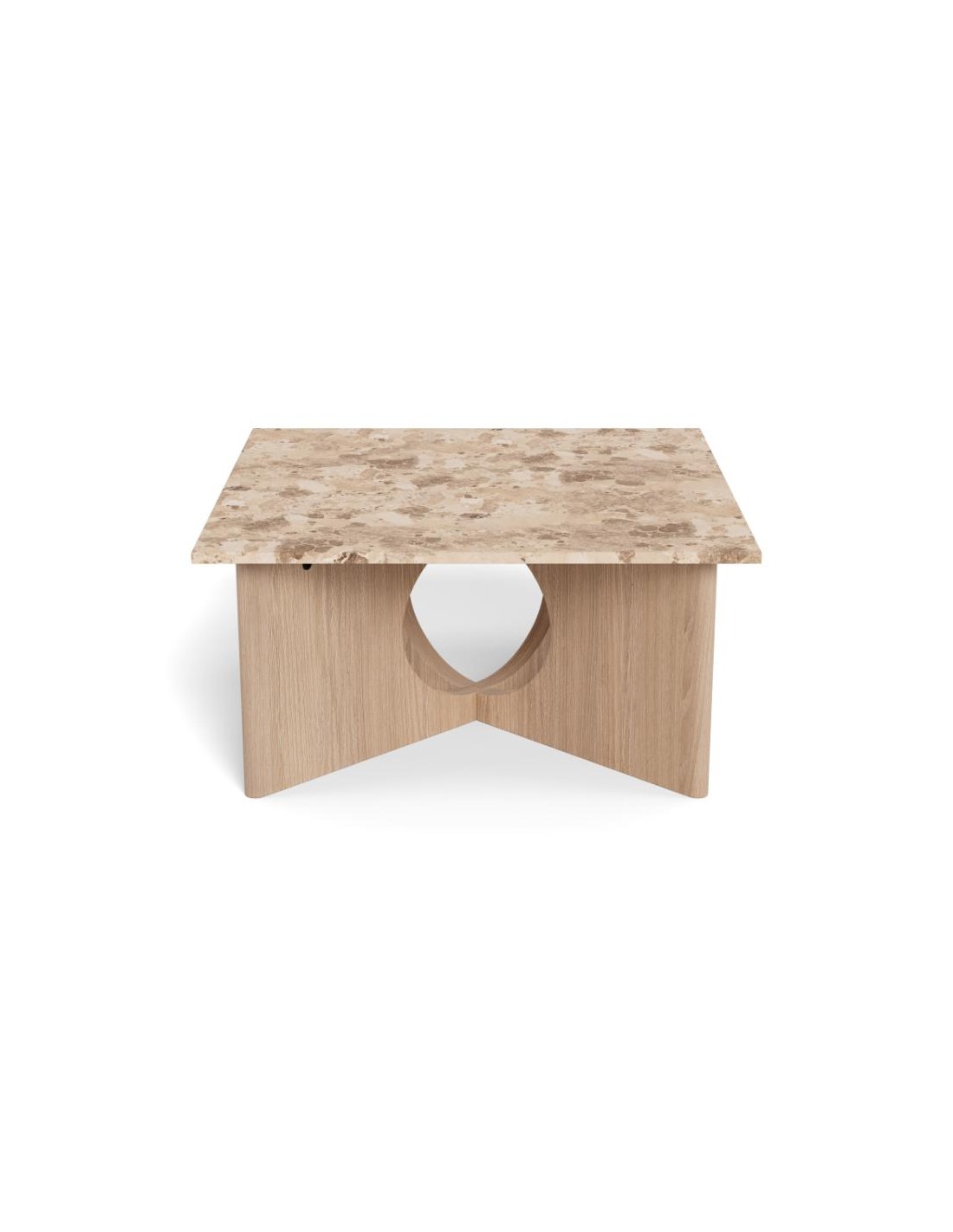 FOLEY Firkantet sofabord i egetræsfinér og marmor 80 x 80 cm - Eg/Beige latté