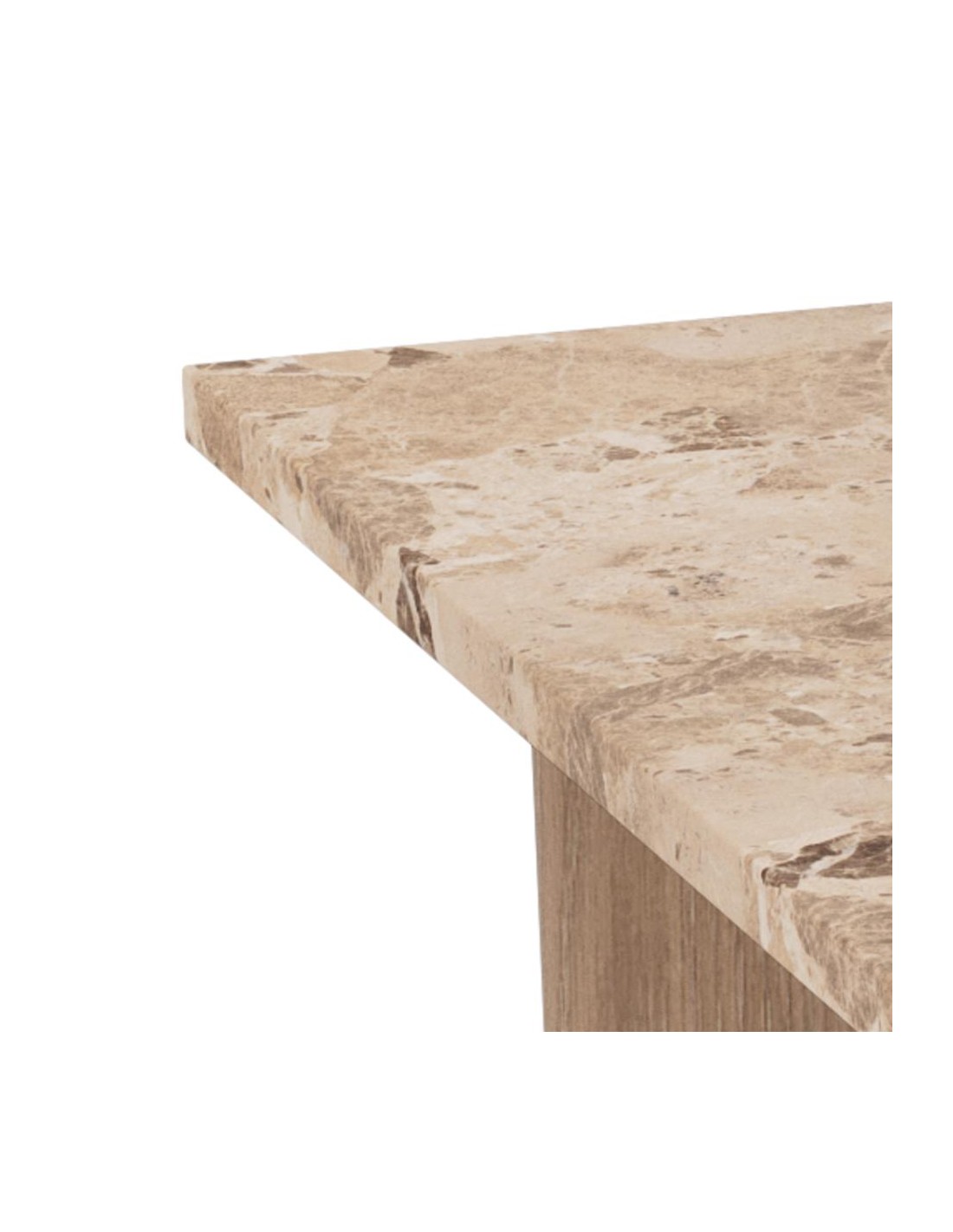 FOLEY Firkantet sofabord udført i et moderne design fremstillet af egetræsfinér og beige latté farvet marmor. Sofabordet måler 42 cm i højden og 80 x 80 cm i bredde og dybde.