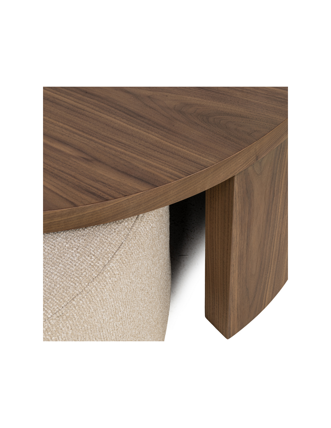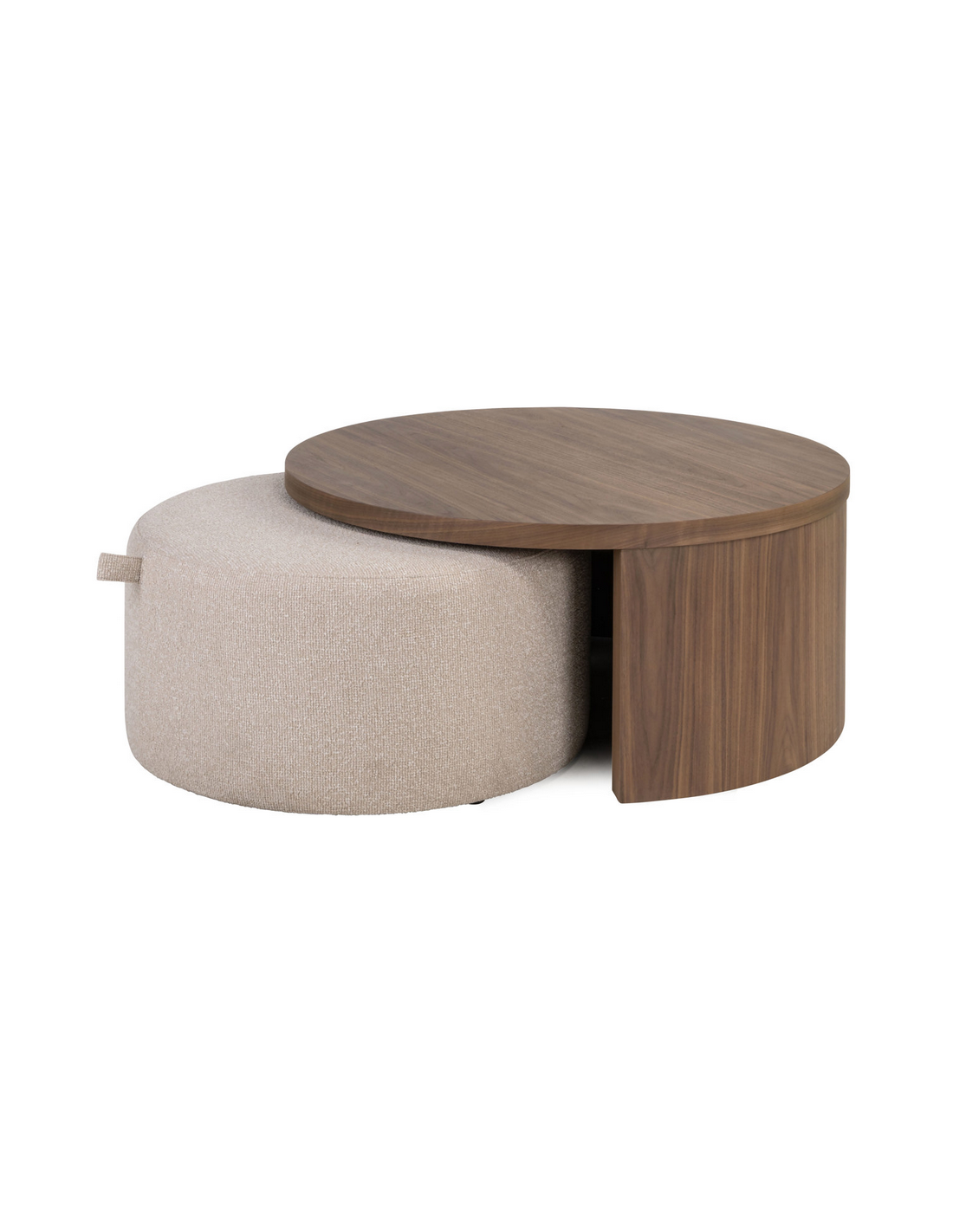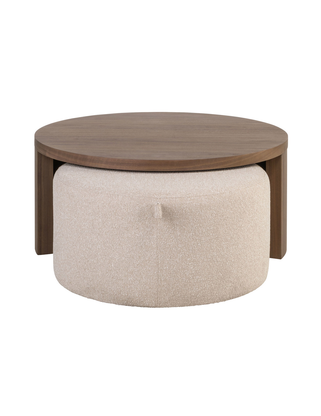 WINDSOR Sofaborde fra hollandske Richmond Interiors, udført i et design af valnøddebrun MDF og med indskudspuf udført i mokkafarvet polyester. Sofabordene måler 35 og 40 cm i højden og 70 og 90 cm i diameter.