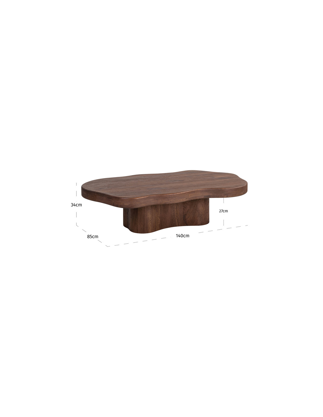 SHERMAN Organisk sofabord fra hollandske Richmond Interiors, udført i et design af brunlakeret MDF og mangotræ. Sofabordet måler 34 cm i højden og 140 x 85 cm i bredde og dybde.
