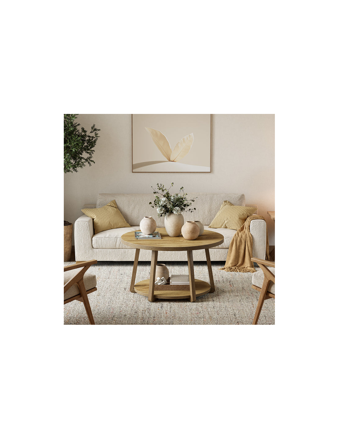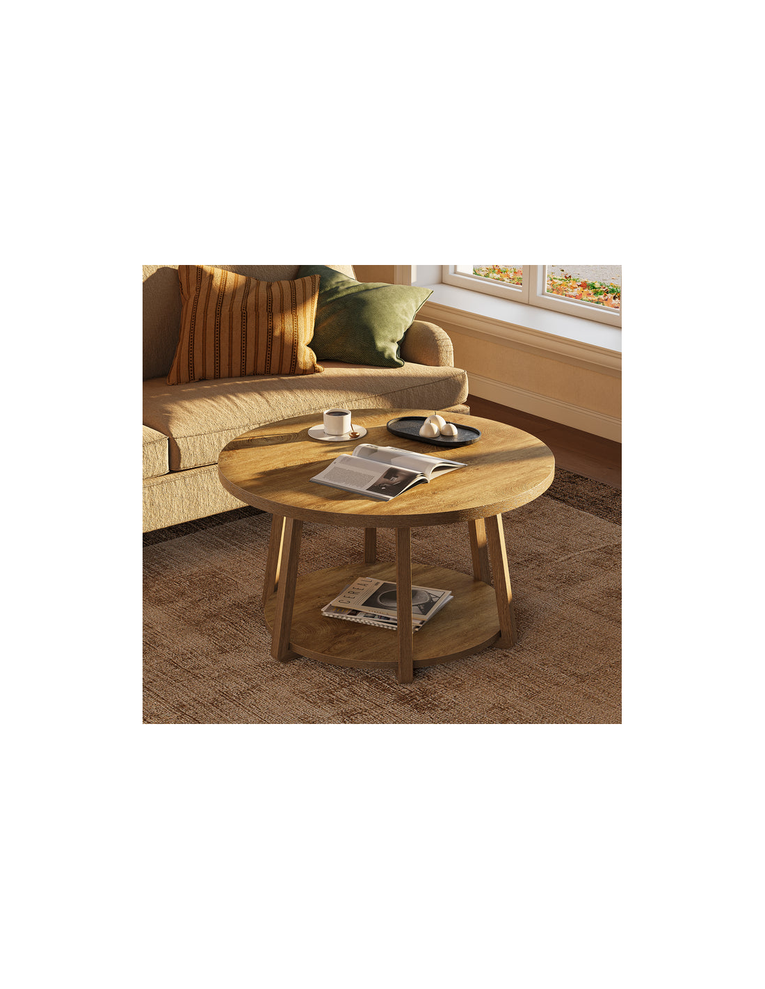 Rundt sofabord i MDF og møbelplade Ø80 cm - Naturbrun