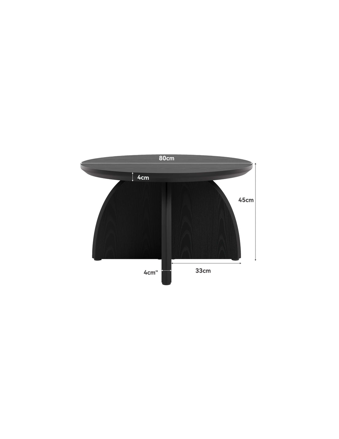 Rundt sofabord udført i et design af sort MDF. Sofabordet måler 45 cm i højden og 80 cm i diameter.