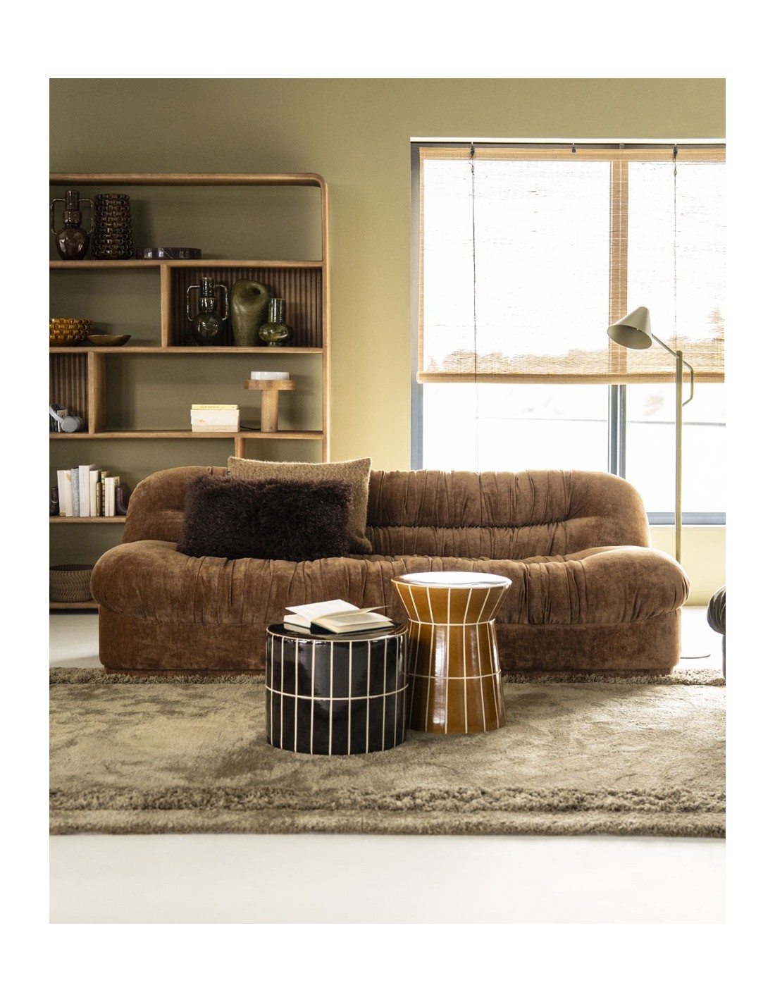 NOOK 3-personers sofa fremstillet i et retropræget design af brun polyester. En komfortabel sofa der vil passe ind i både den moderne, såvel som i den klassiske indretning. Sofaen måler 72 cm over ryggen og 218 x 96 cm i bredde og dybde.