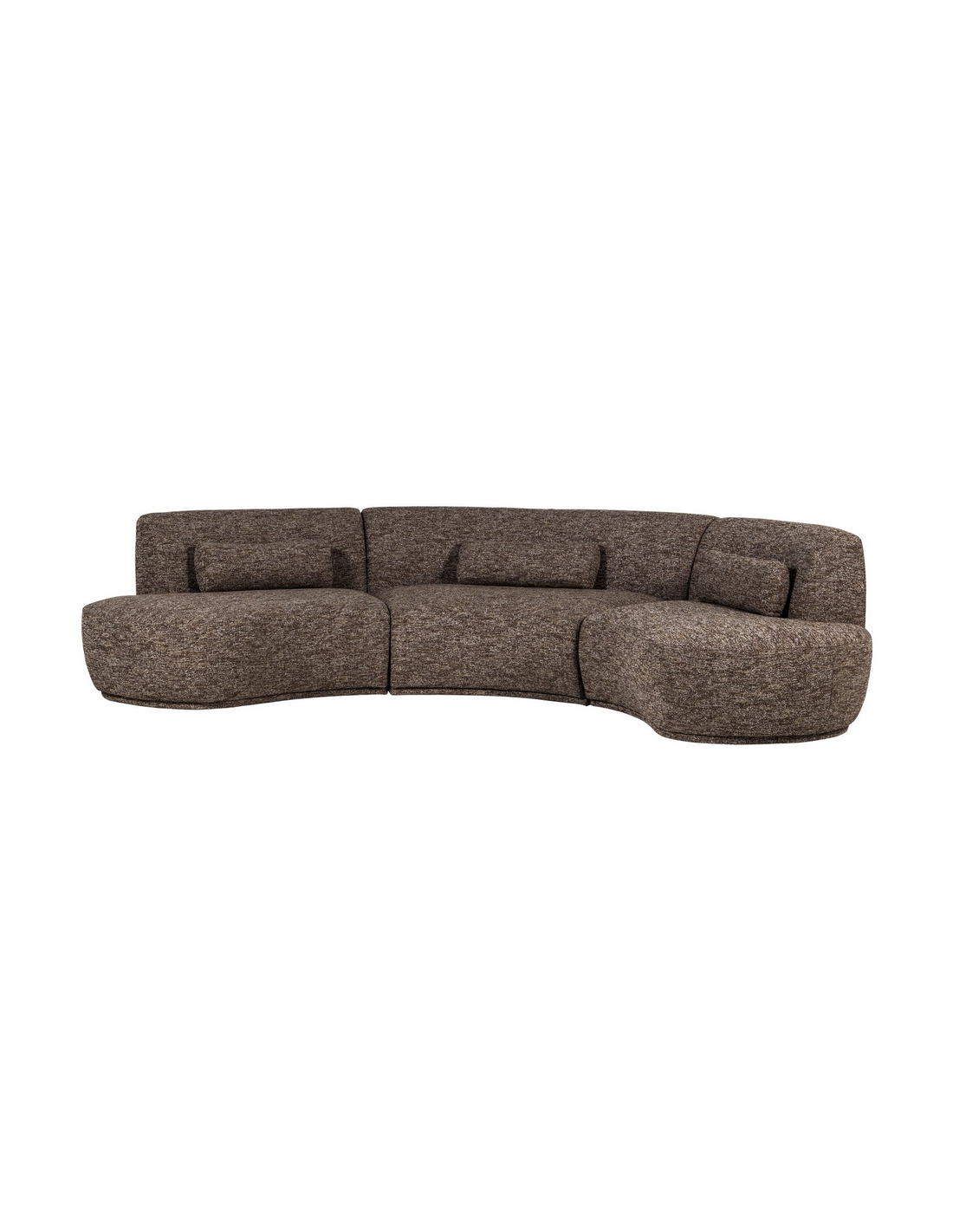 BATAVIER Stor buet sofa udført i et luksuriøst og komfortabelt design af meleret brun polyester med ben i sort kunststof. Sofaen måler 320 x 174 cm i bredde og dybde. Sofaen er polstret med højkvalitets skum og fjedre.