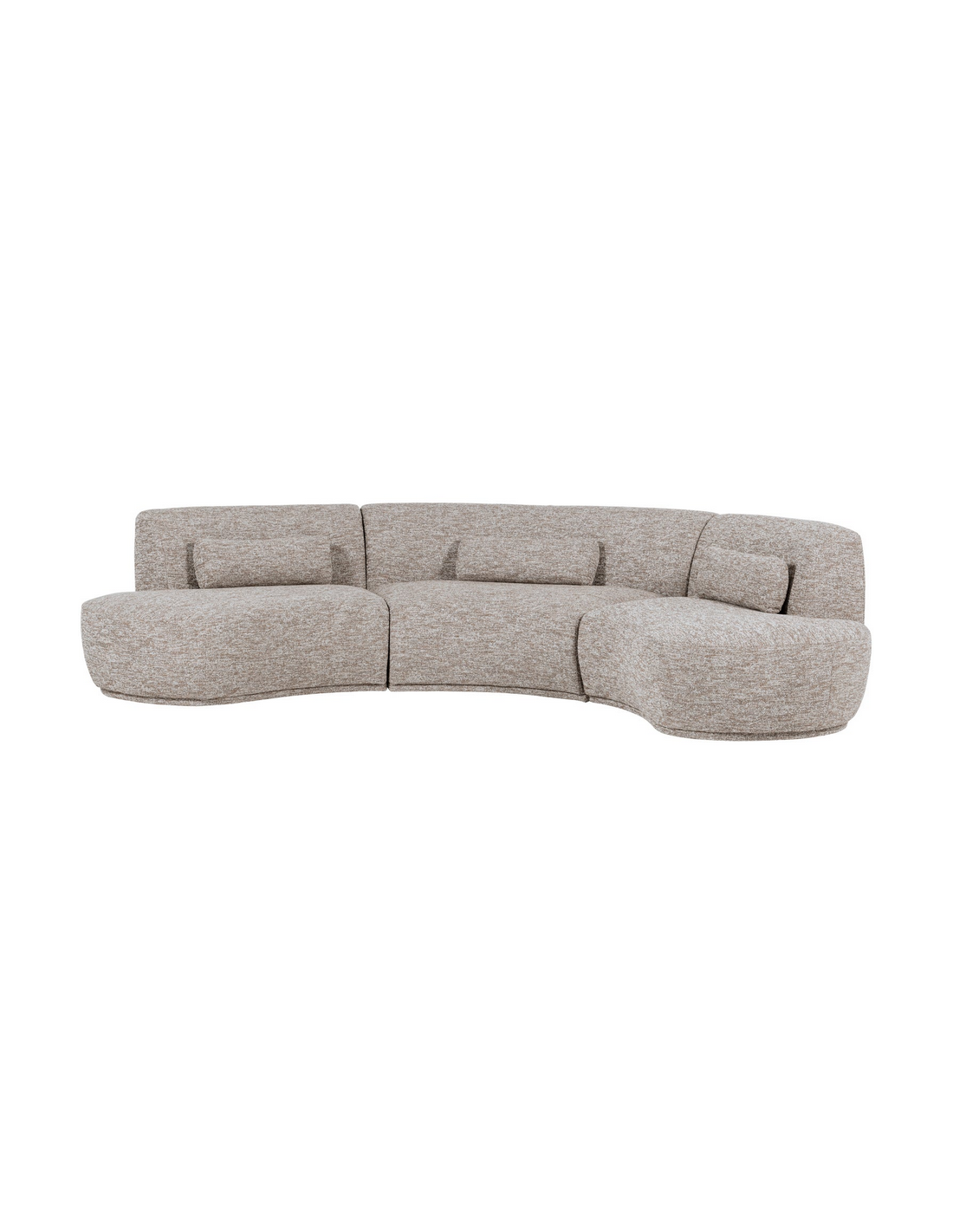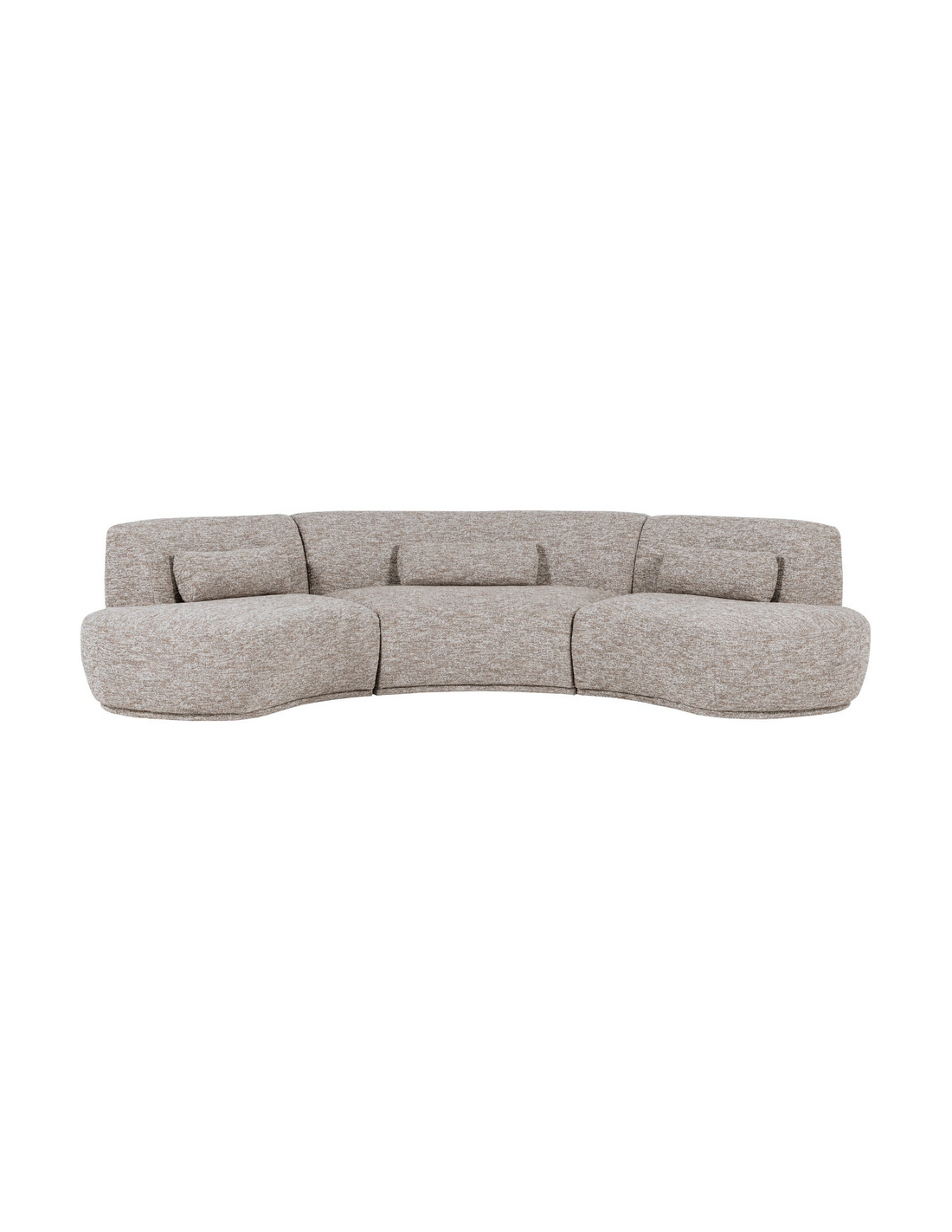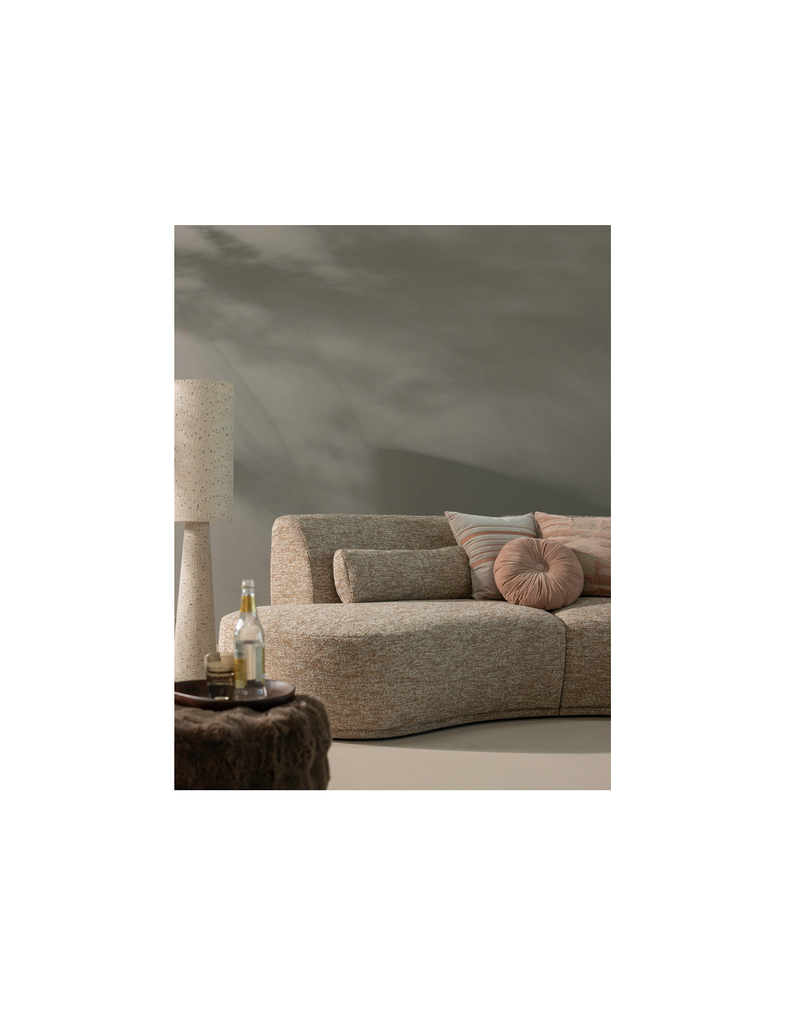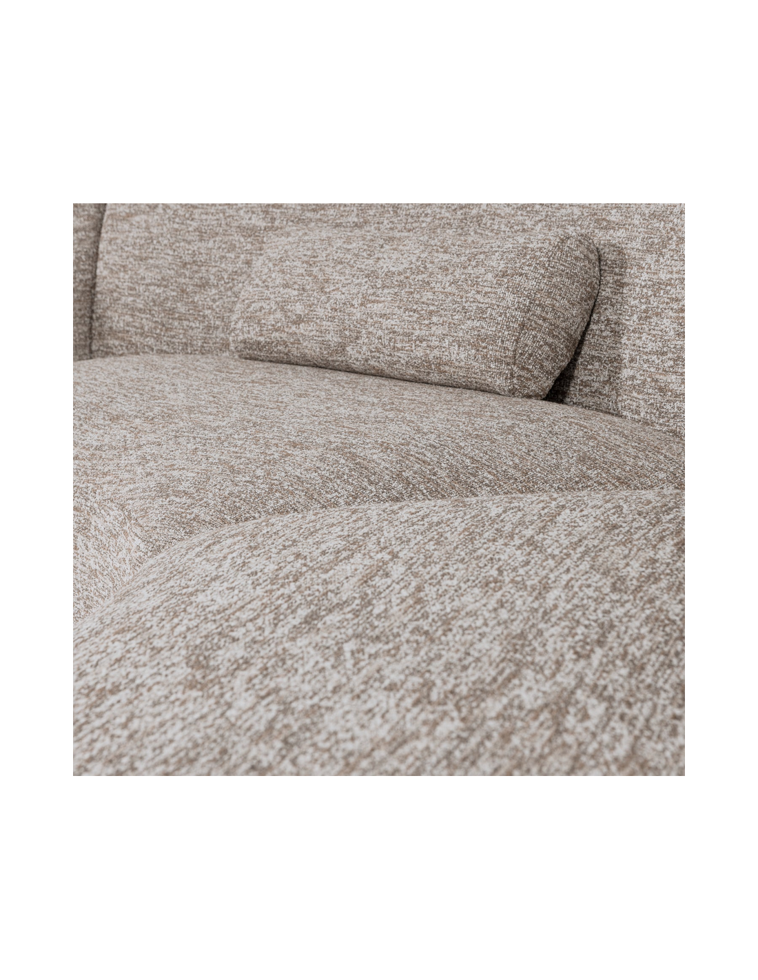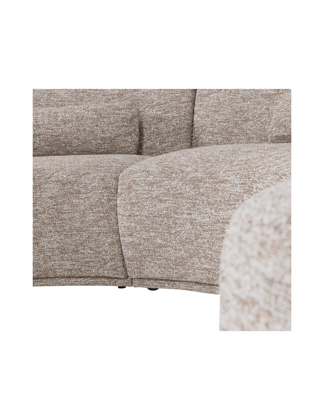 BATAVIER Stor buet sofa udført i et luksuriøst og komfortabelt design af meleret sandfarvet polyester med ben i sort kunststof. Sofaen måler 320 x 174 cm i bredde og dybde. Sofaen er polstret med højkvalitets skum og fjedre.