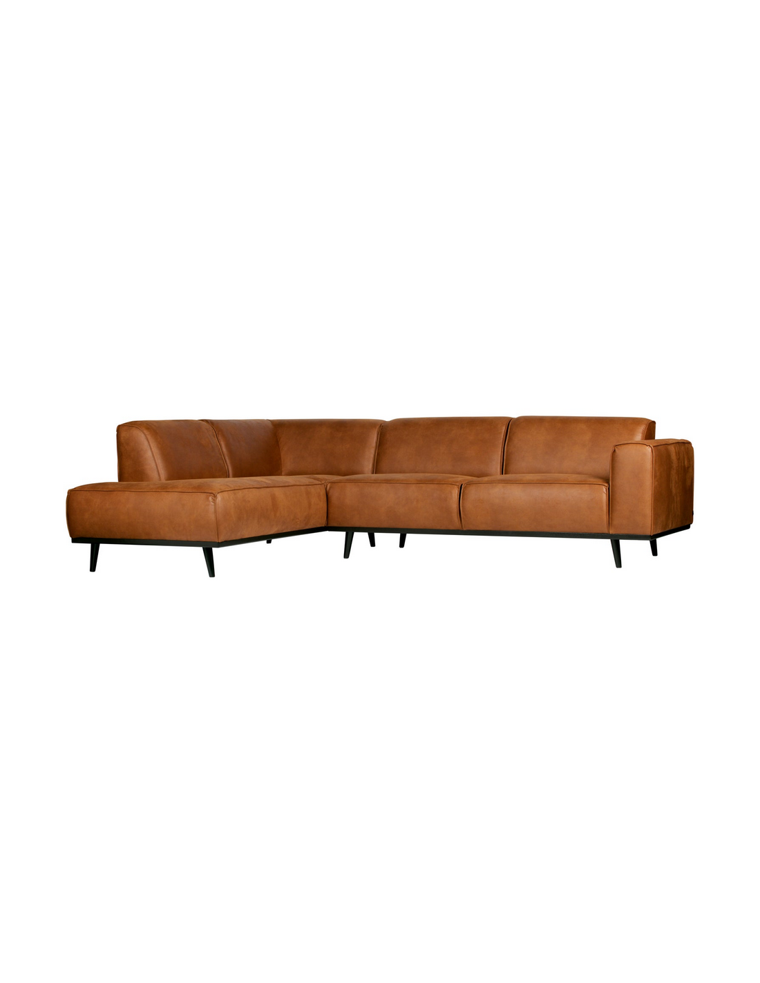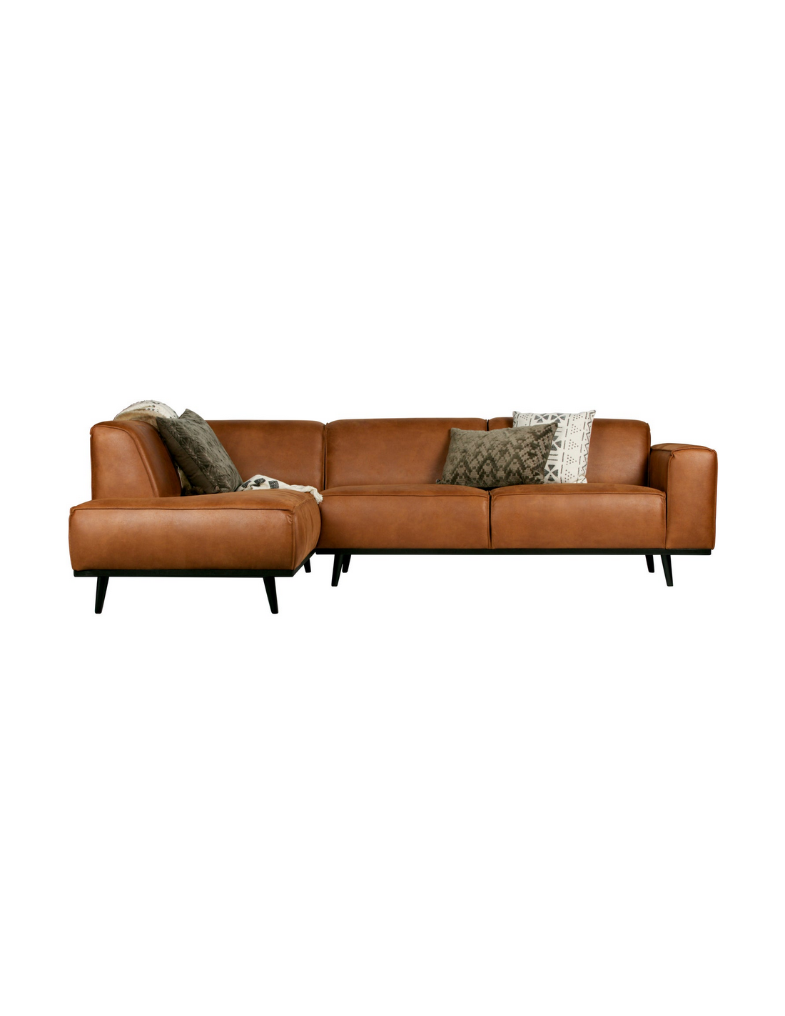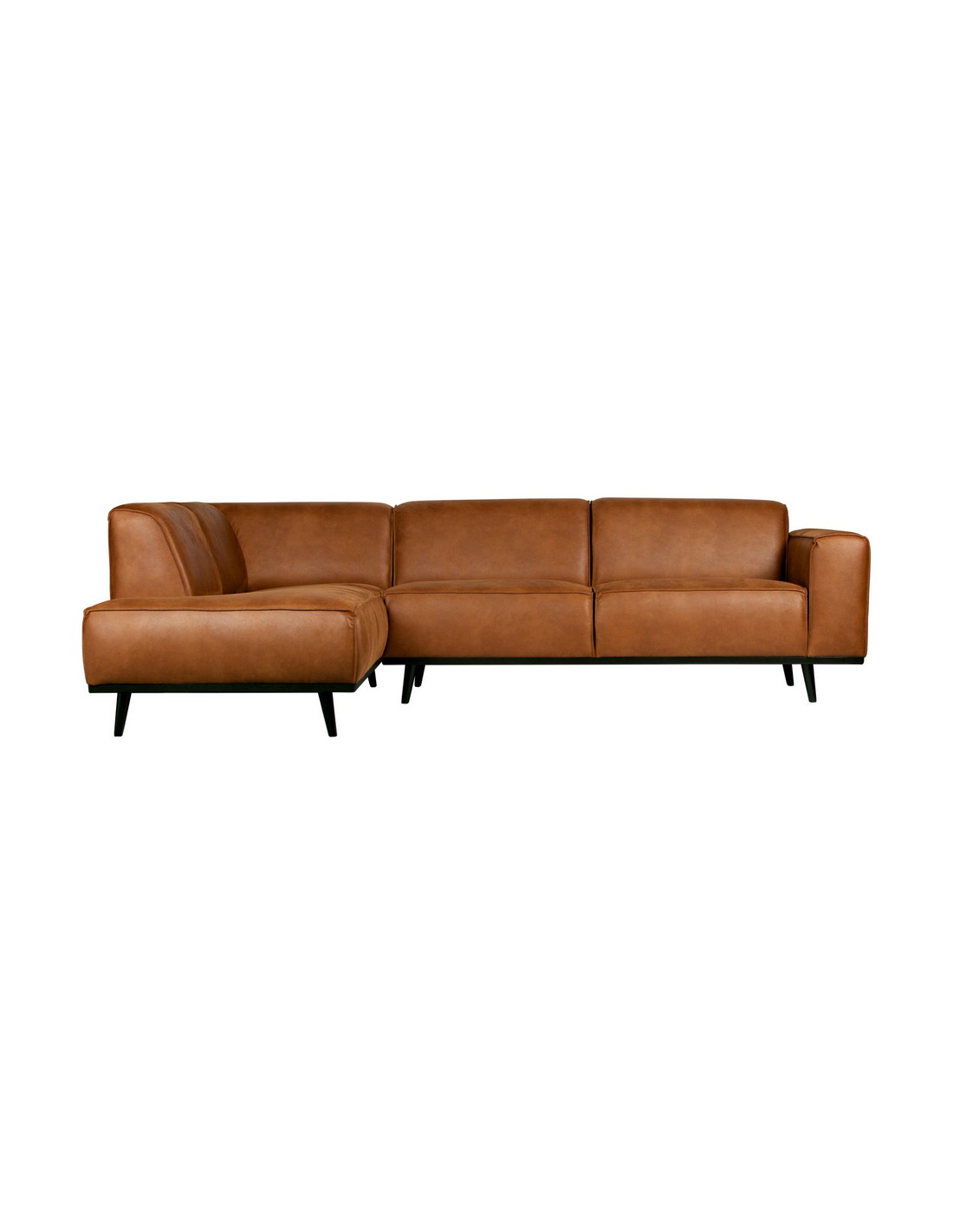 STATE Hjørnesofa i birketræ og øko-læder 274 x 210 cm - Sort/Vintage cognac
