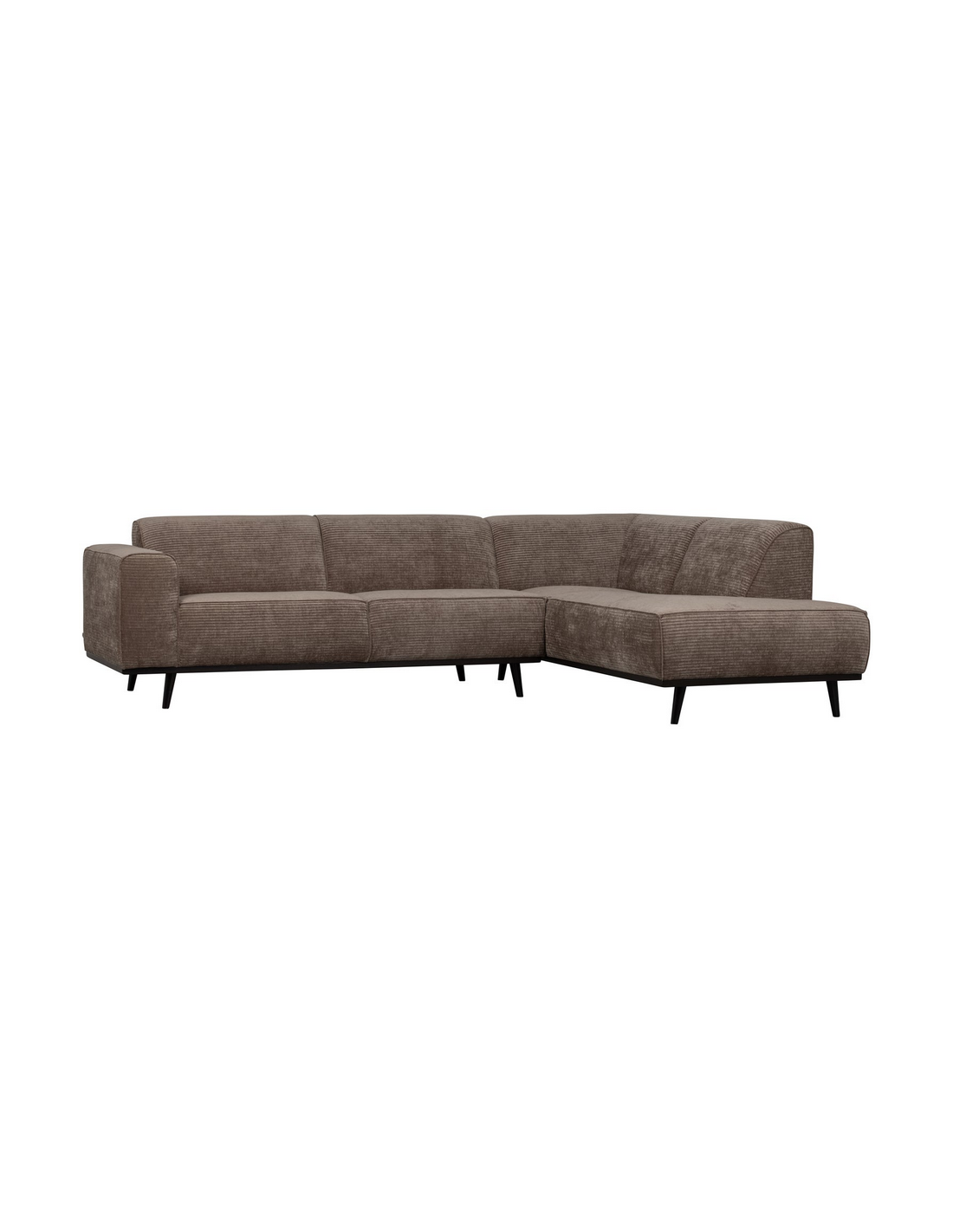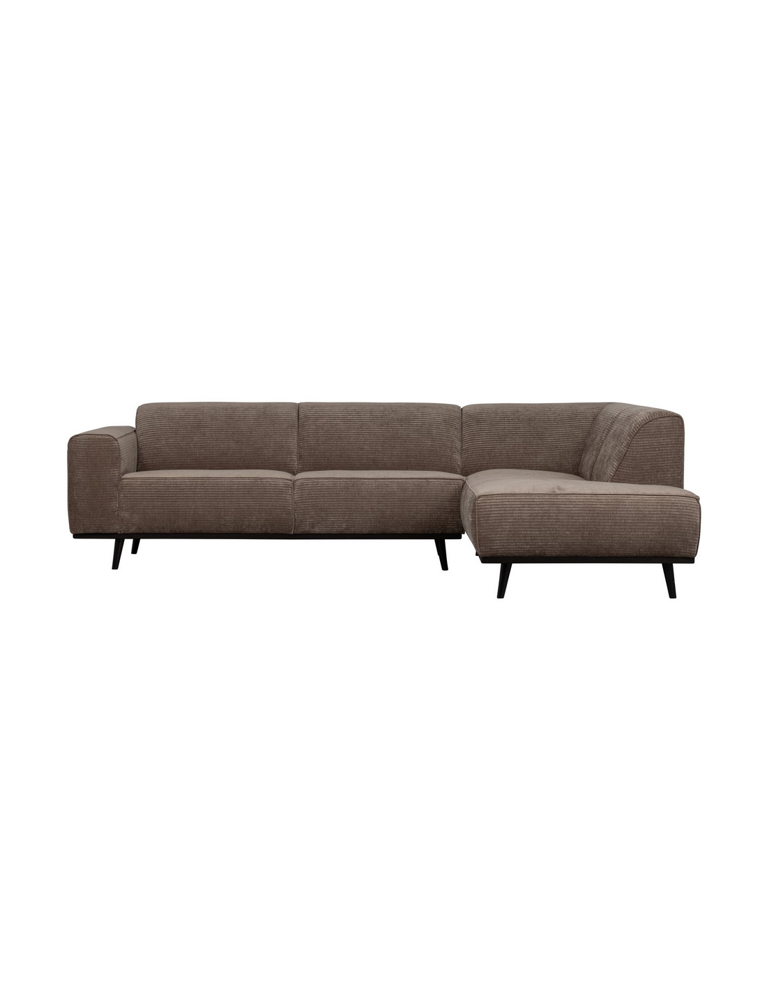 STATE Hjørnesofa udført i et smukt design af sortlakeret birketræ og taupefarvet Jacquard ribcord polyester. Sofaen måler 274 x 210 cm i bredde og dybde, og med en siddehøjde på 45 cm. Sofaen er polstret med højkvalitets skum og Bonell og zigzag fjedre.