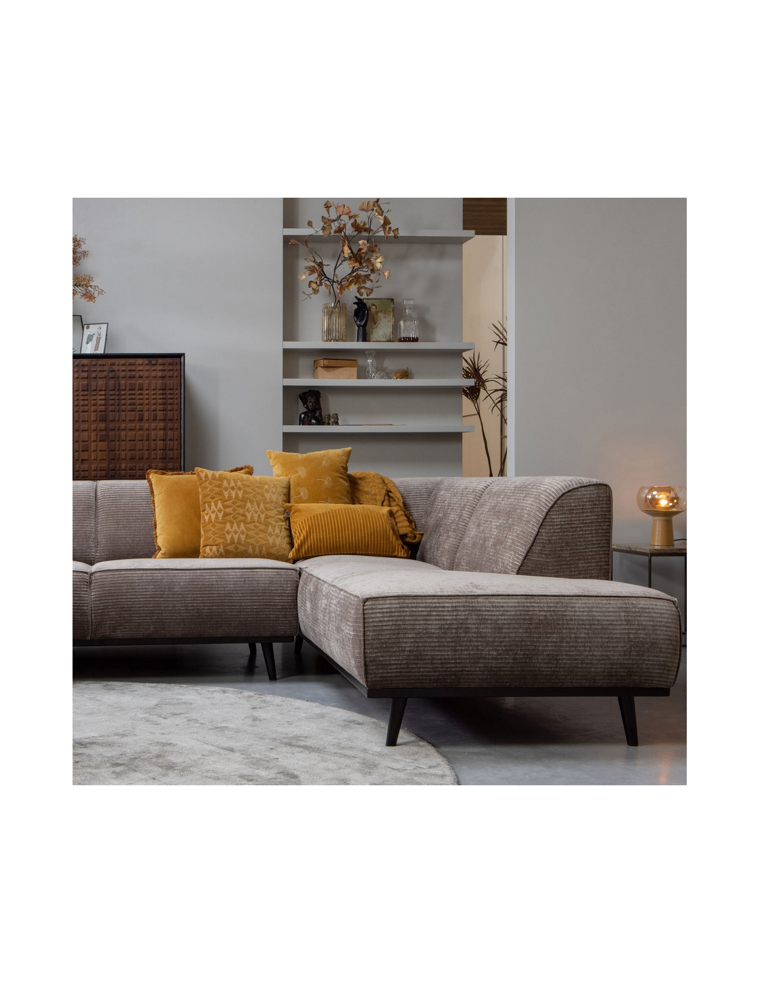 STATE Hjørnesofa i birketræ og Jacquard ribcord polyester 274 x 210 cm - Sort/Taupe