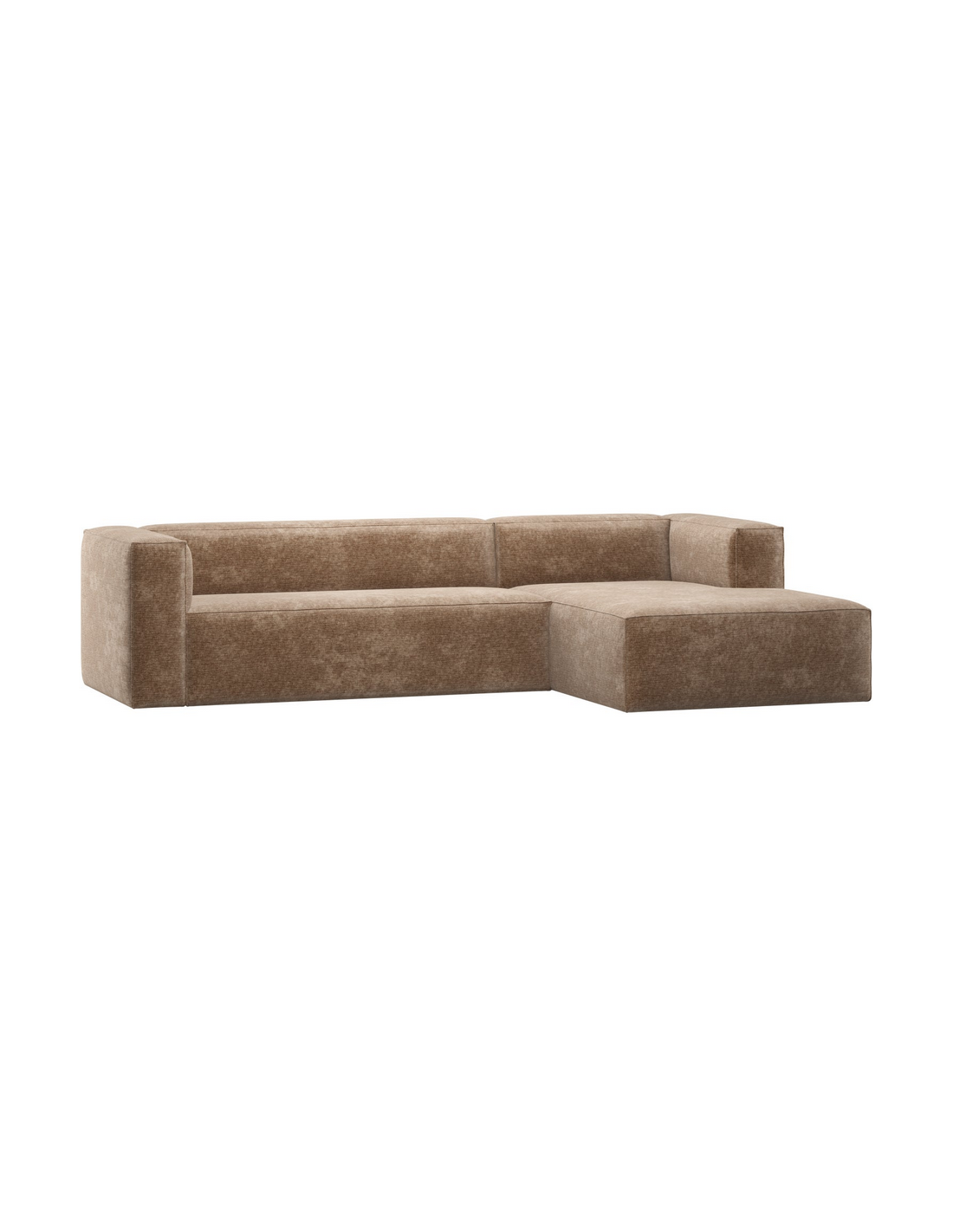 BEAN Chaiselong sofa udført i et luksuriøst og komfortabelt design af taupefarvet chenille velour med letskjulte ben i sort kunststof. Sofaen måler 305 x 175 cm i bredde og dybde. Sofaen er polstret med højkvalitets skum. Denne model er højrevendt.