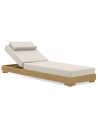 Sky solseng fra det Canadiske mærke Couture Jardin, udført i et moderne design af egetræsfarvet aluminium og sandfarvet vandafvisende Couturetex tekstil med hurtigtørrende skumfyld. Solsengen måler 34 - 99 cm i højden og med ligge-/siddehøjde på 34 cm. Ryglænet kan tilpasses i niveauer.