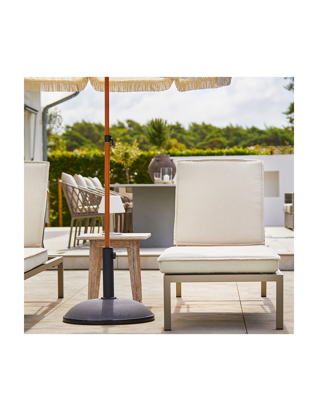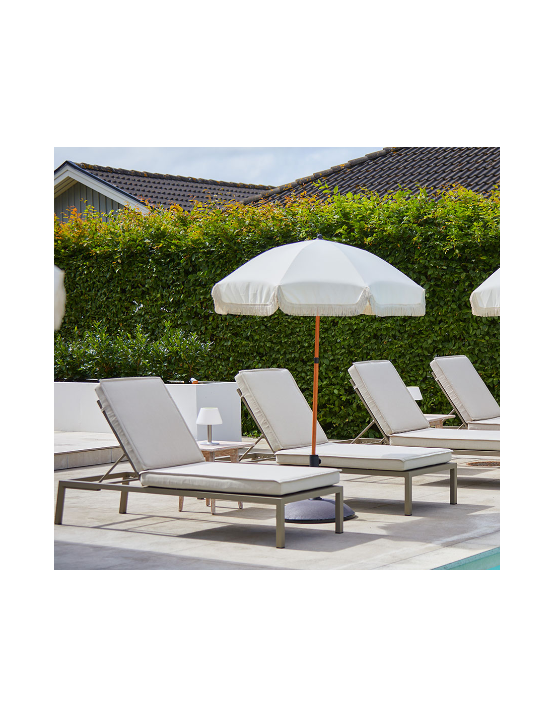 Moderne solseng fra Svenske Hillerstorp, udført i et stilrent design af gråbeige aluminium og med hynde i vandafvisende og UV resistent beige olefin tekstil. Solsengen kan i ryggen justeres i højden, således du let opnår en optimal stilling, uanset du vil ligge plant eller om du vil ligge og læse - kan indstilles i 4 niveauer. Solsengen måler 200 x 70 cm i længde og bredde og 32 - 75 cm i højden, de 32 cm værende liggehøjden.