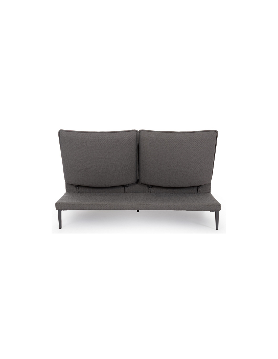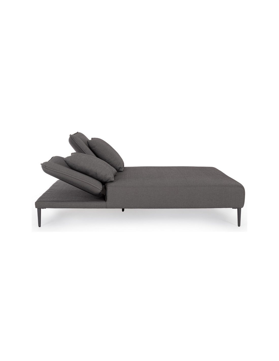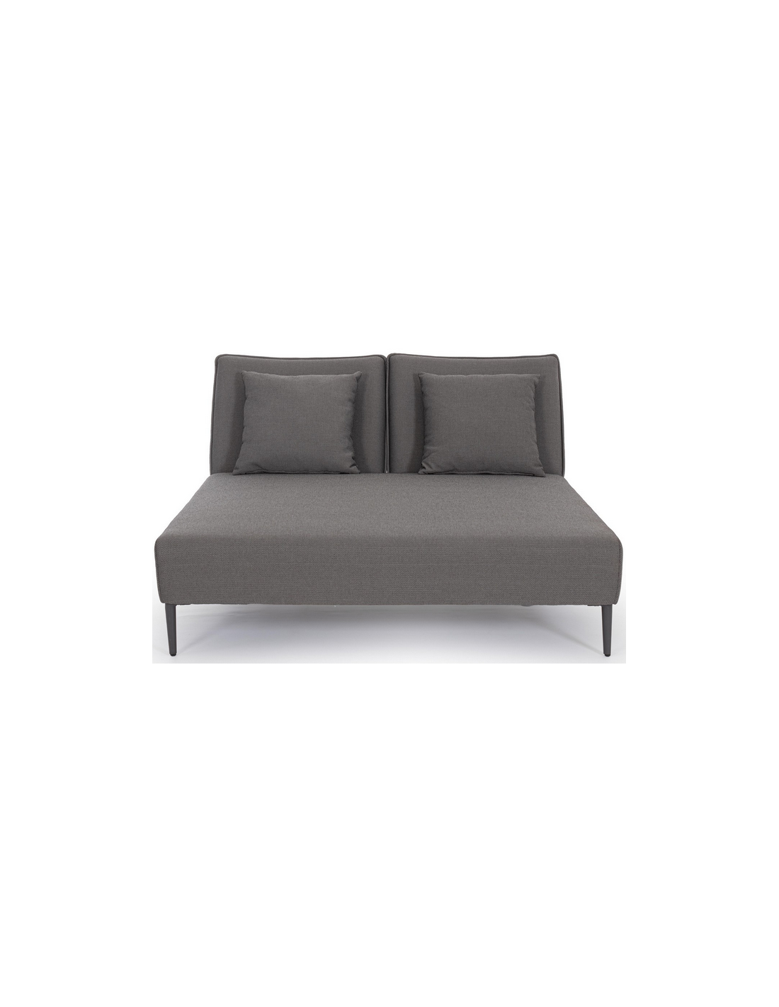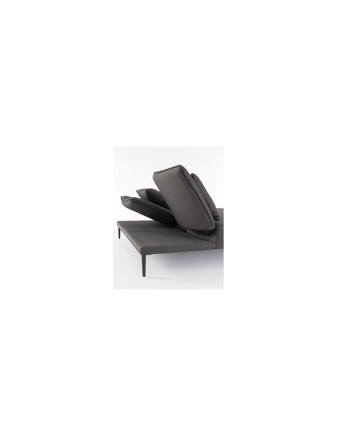 Dobbelt solseng udført i et design af charcoal pulverlakeret aluminium og mørkegrå vandafvisende olefin med quick dry skum. Solsengen måler 40 - 93 cm i højden og 194 x 147 cm i bredde og dybde. Solsengen tåler at stå ude i regnvejr.