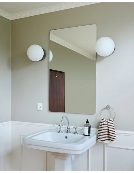 Refine badeværelsesspejl med alugrå lakeret ramme. Spejlet kan monteres enten lodret eller vandret og måler 100 x 60 cm i højde og bredde.