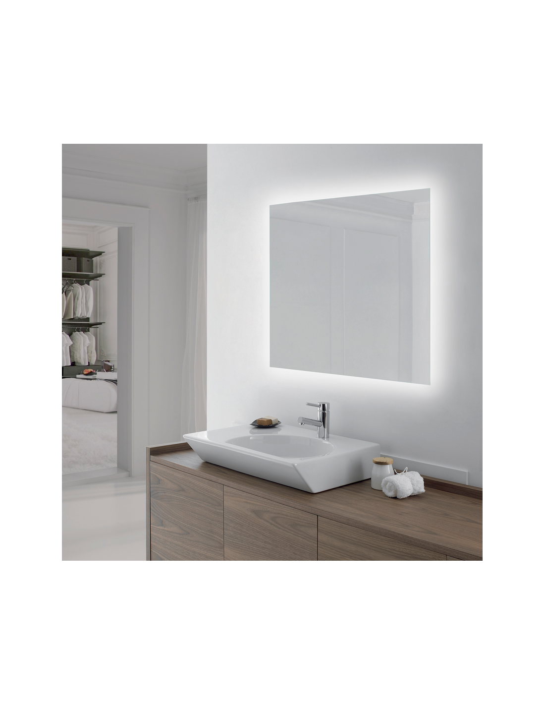 • Stilrent, firkantet LED-spejl med elegant backlight