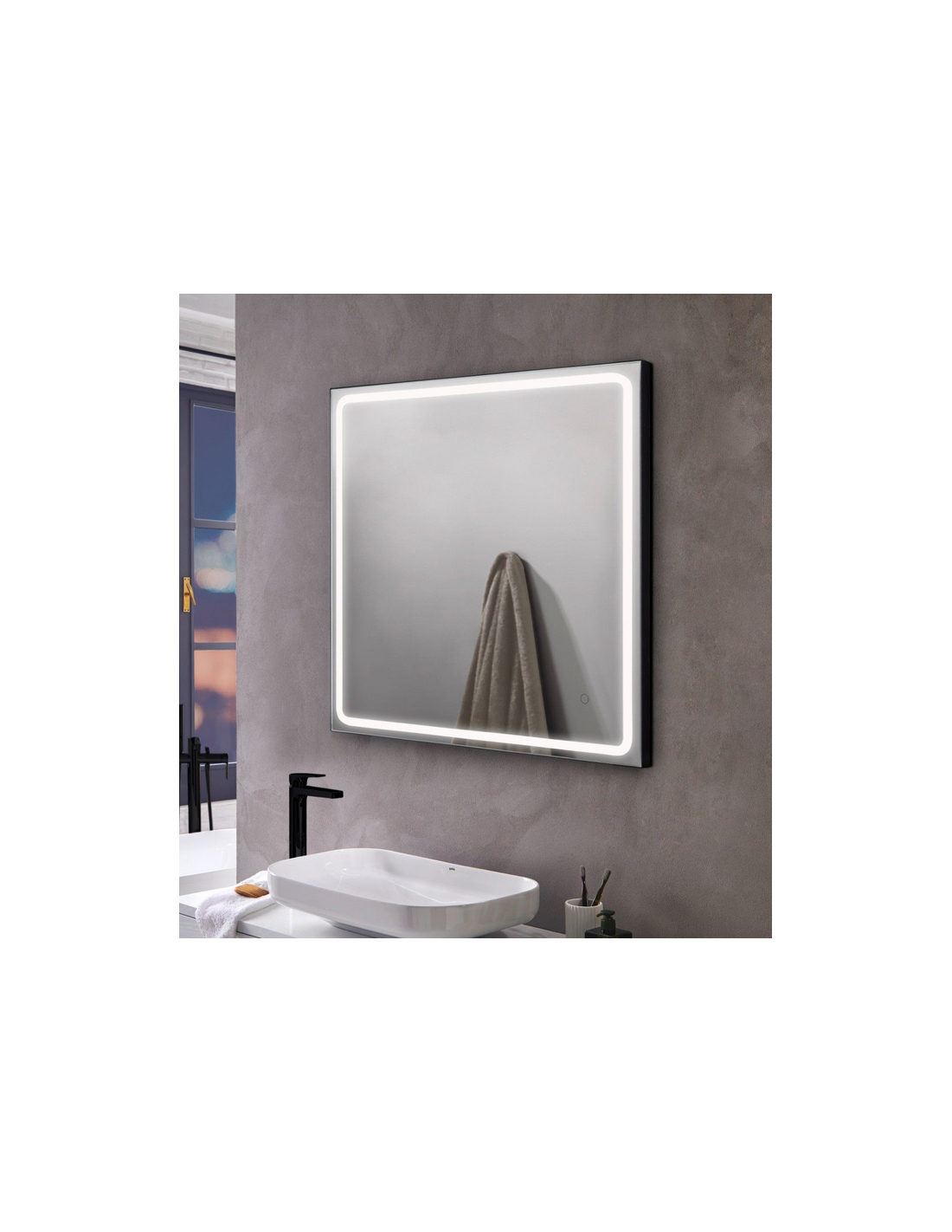 MIA-1 Badeværelsesspejl med lys 80 x 90 cm 4000K - Mat sort