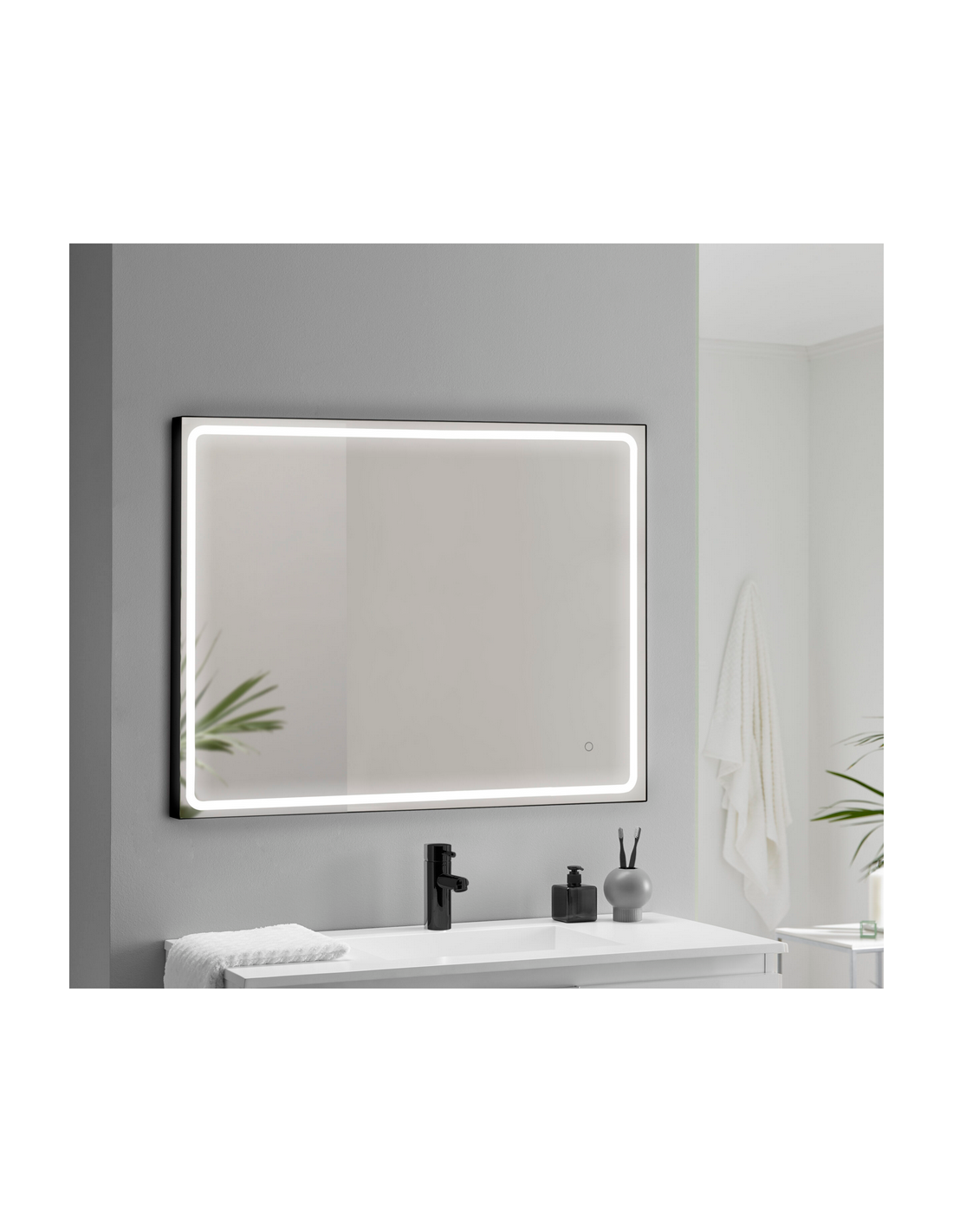 MIA-1 Badeværelsesspejl med lys 80 x 100 cm 4000K - Mat sort