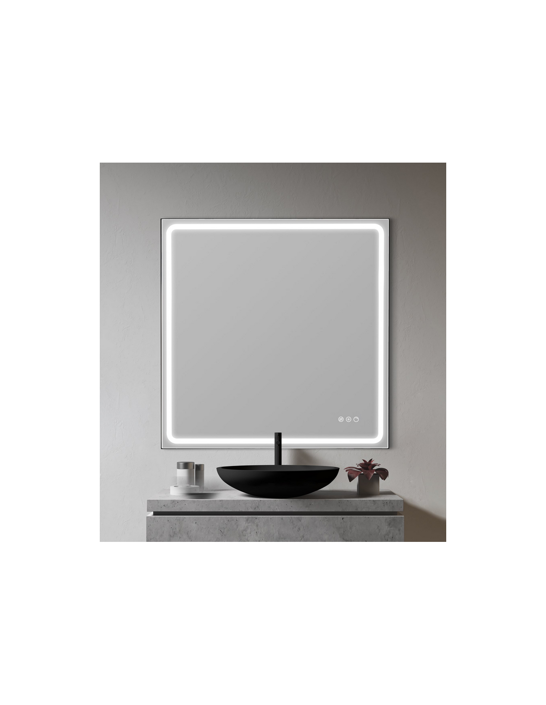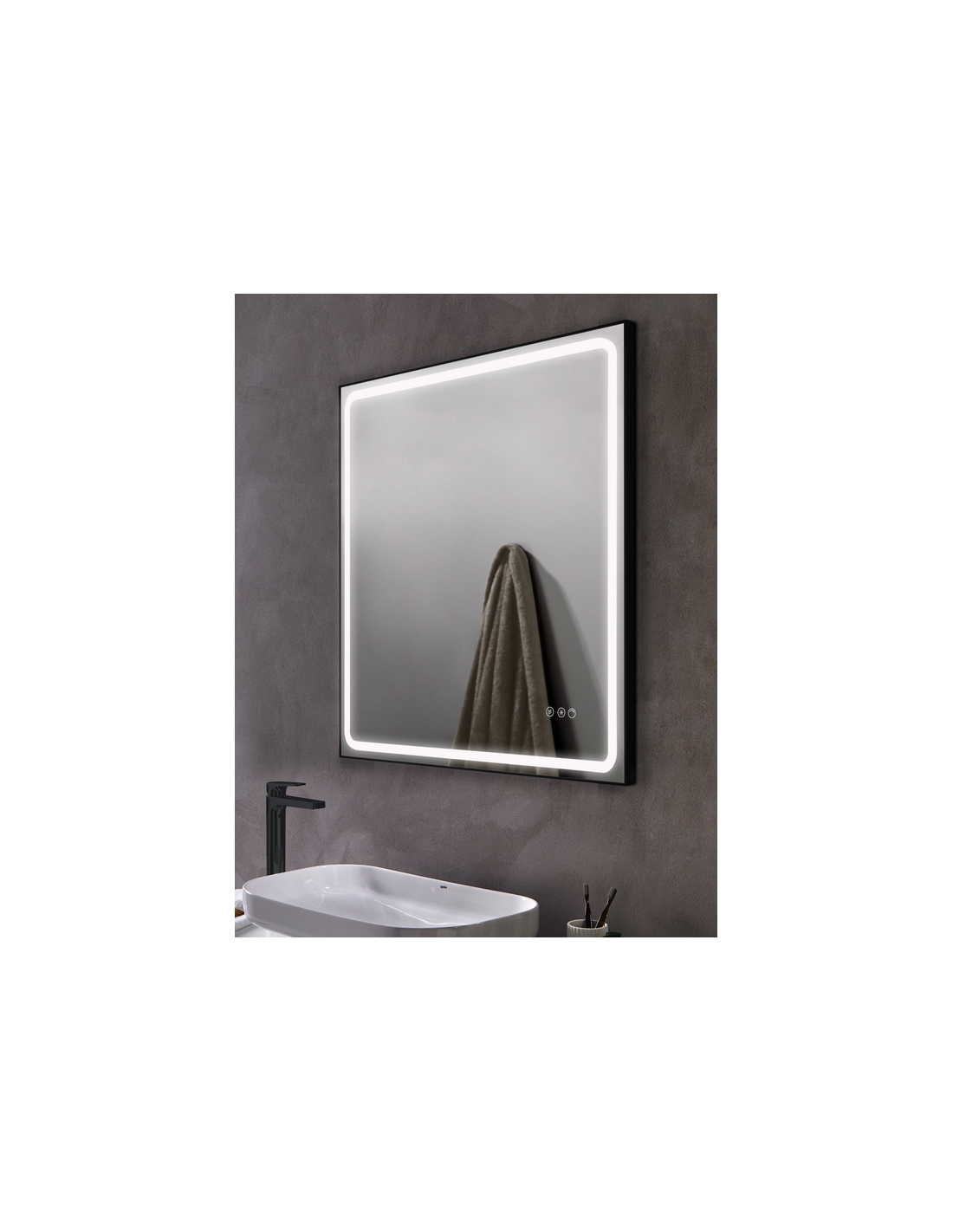 MIA-3 Badeværelsesspejl med lys udført i et stilrent design med ramme i mat sortlakeret aluminium. Spejlet har LED belysning 3000 - 6000K og måler 80 x 80 cm i højde og bredde (bemærk venligst, at produktbilledet kan hænde at vise samme spejl i anden størrelse). Spejlet kan tændes og slukkes via berøringssensor på spejlet og har anti-dug funktion. Spejlet har ligeledes en indbygget hukommelsesfunktion. Hvilket vil sige, at spejlet tænder på samme indstilling igen, efter du har haft det slukket. Spejlet har en farvegengivelse på 90 CRI, hvilket er utroligt højt sammenlignet med andre spejle.