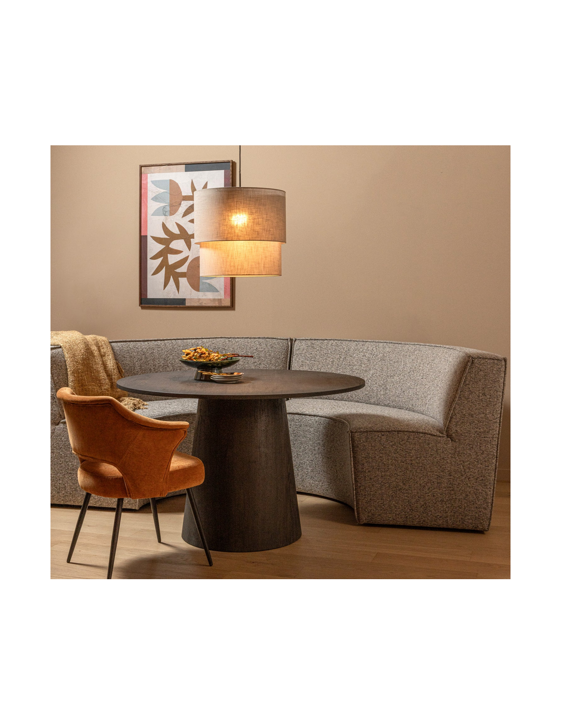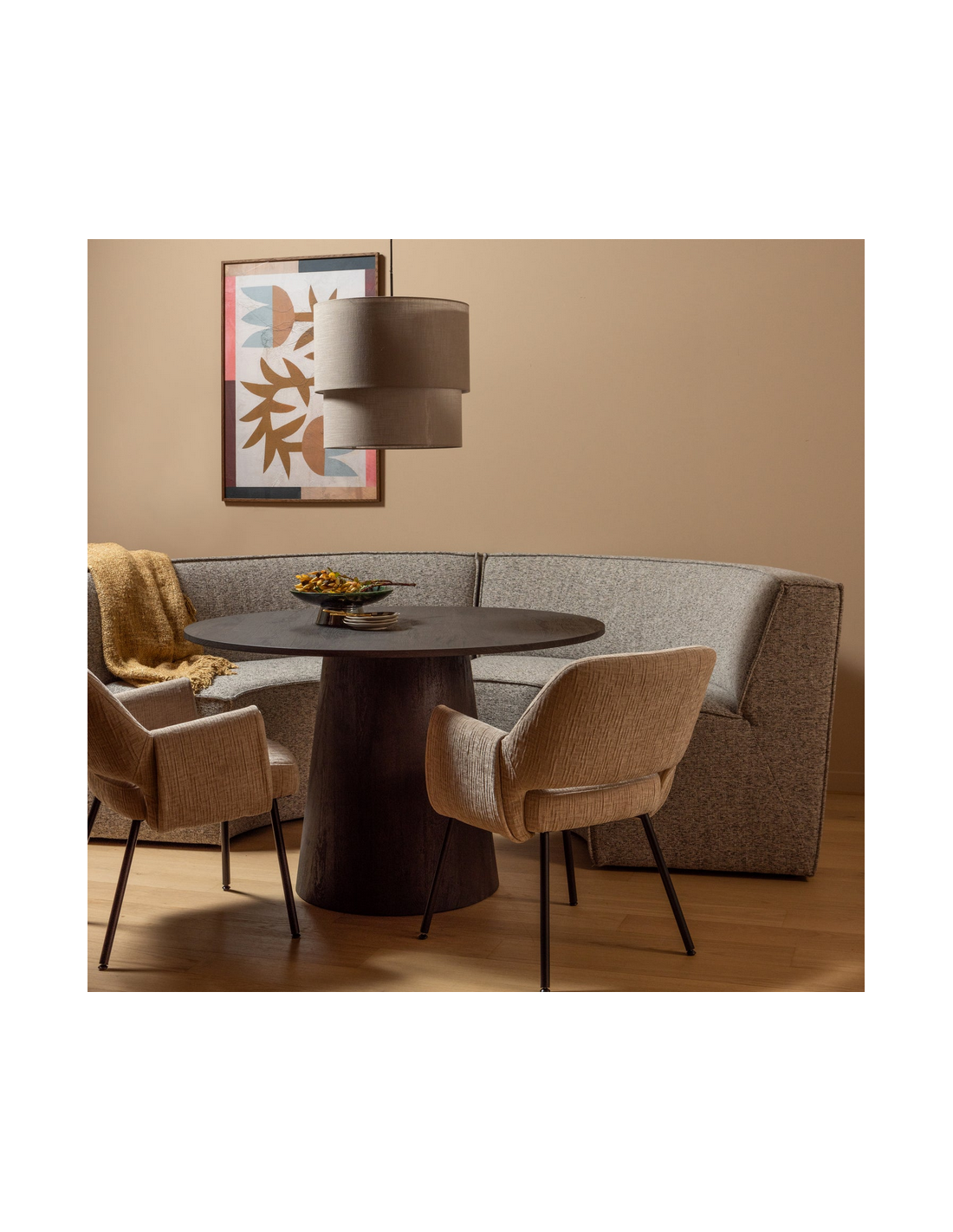 EUROPA Buet spisebænk udført i et luksuriøst design af meleret sandfarvet polyester med ben i sort kunststof. Spisebænken er i 2 moduler og måler 262 x 131 cm i bredde og dybde. Spisebænken er polstret med højkvalitets skum og fjedre.