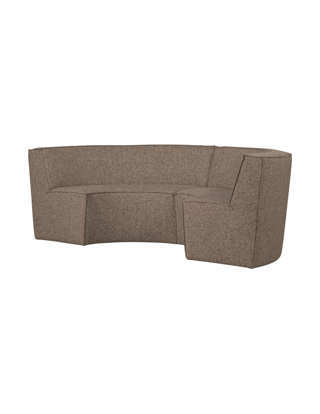 EUROPA Buet spisebænk udført i et luksuriøst design af meleret mørkebrun polyester med ben i sort kunststof. Spisebænken er i 2 moduler og måler 262 x 131 cm i bredde og dybde. Spisebænken er polstret med højkvalitets skum og fjedre.