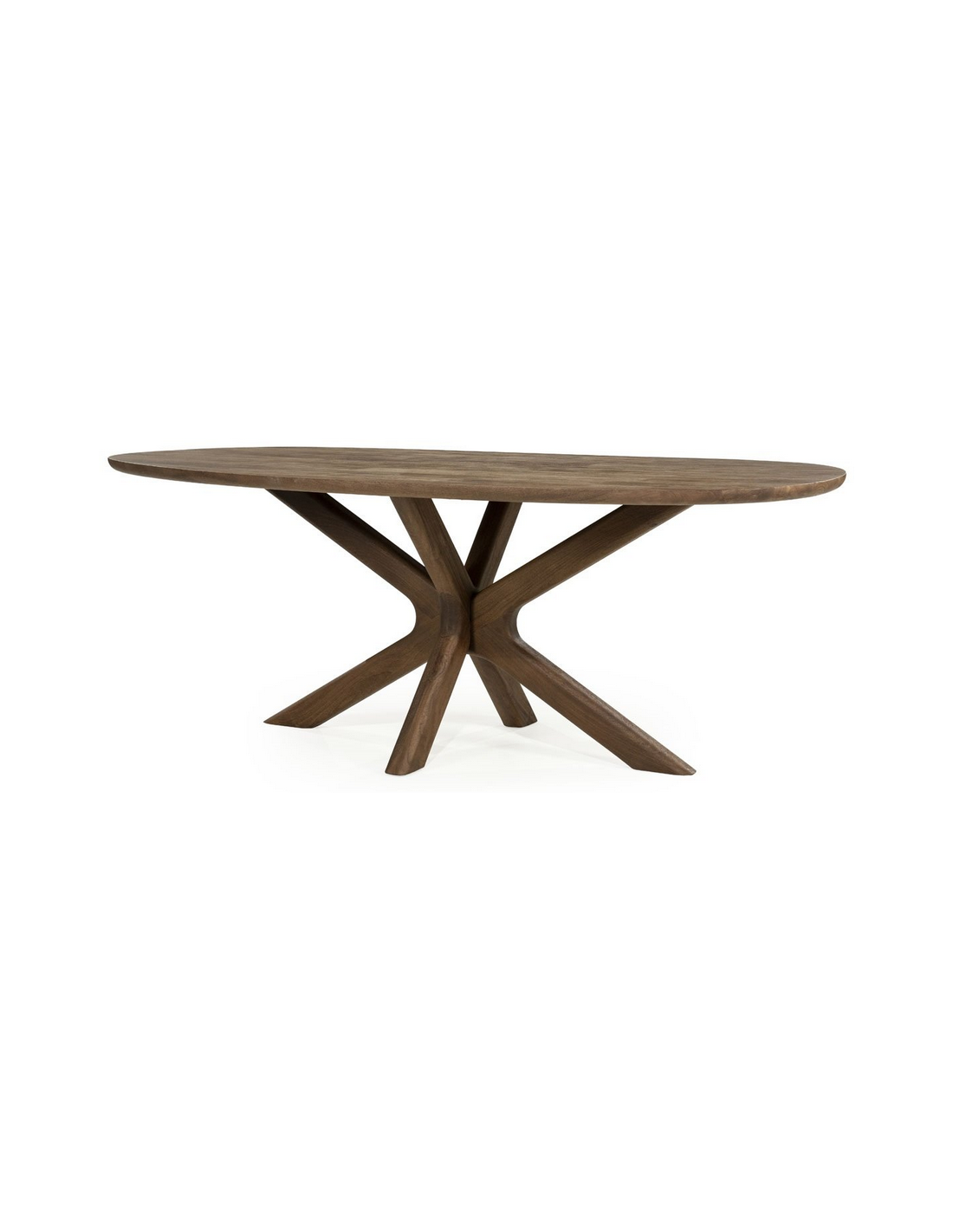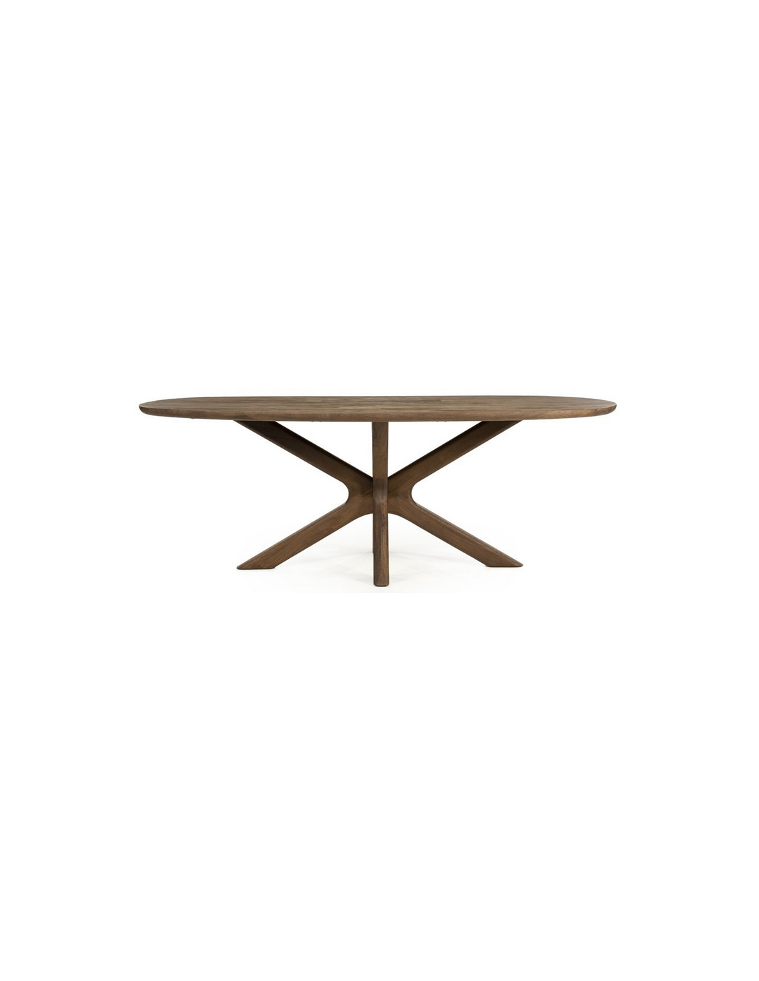 TYCHO Ovalt spisebord udført i et moderne design, fremstillet i lysebrun lakeret mangotræ. Spisebordet måler 77 cm i højden og 210 x 110 cm i bredde og dybde.