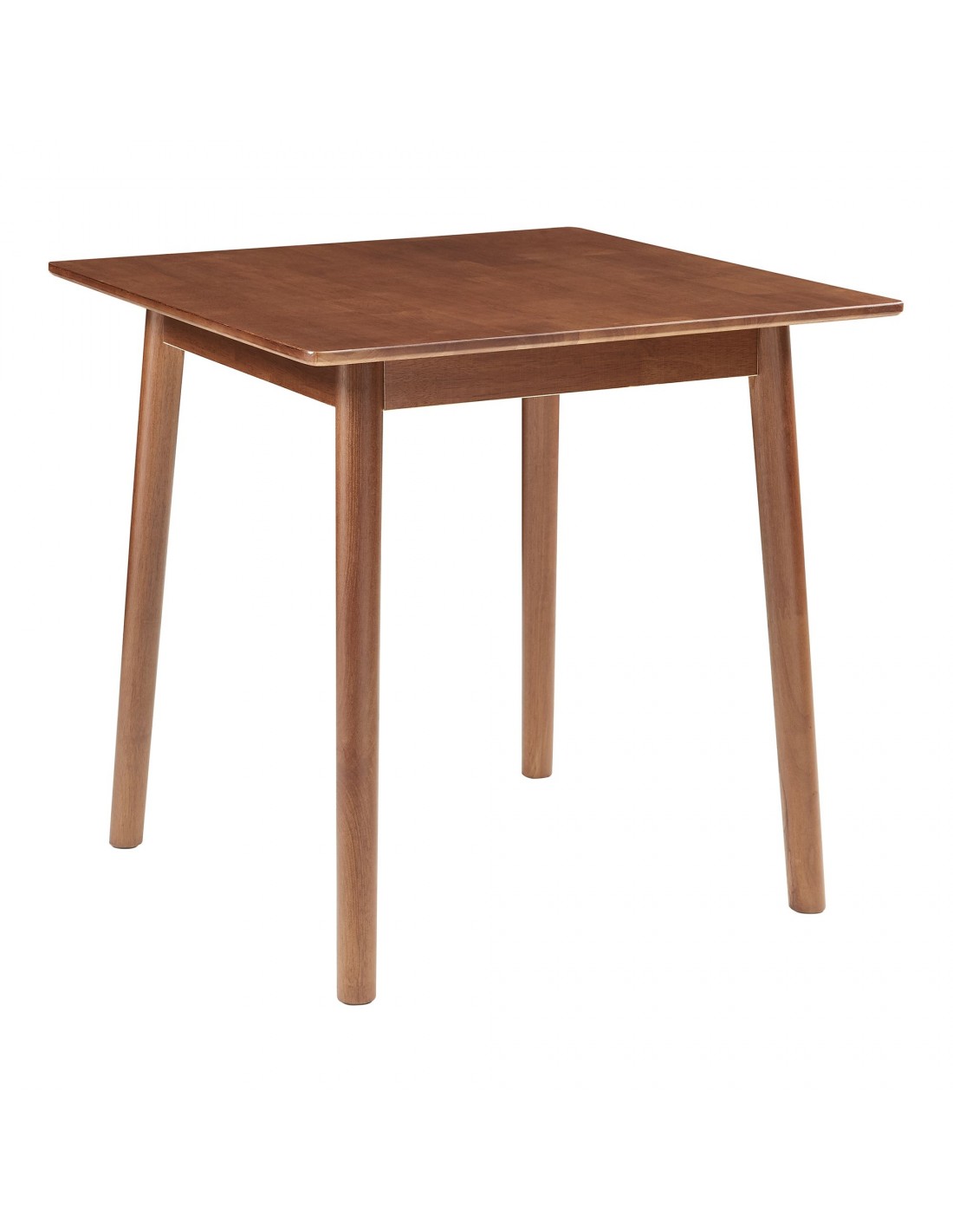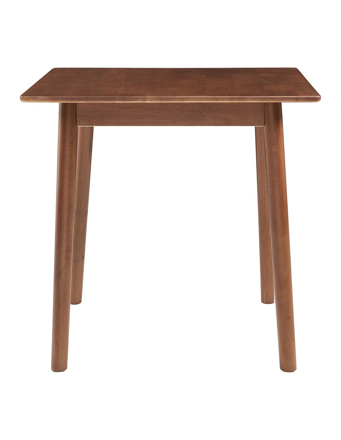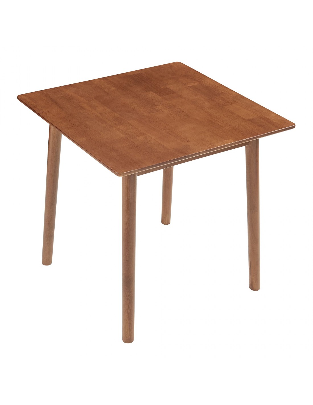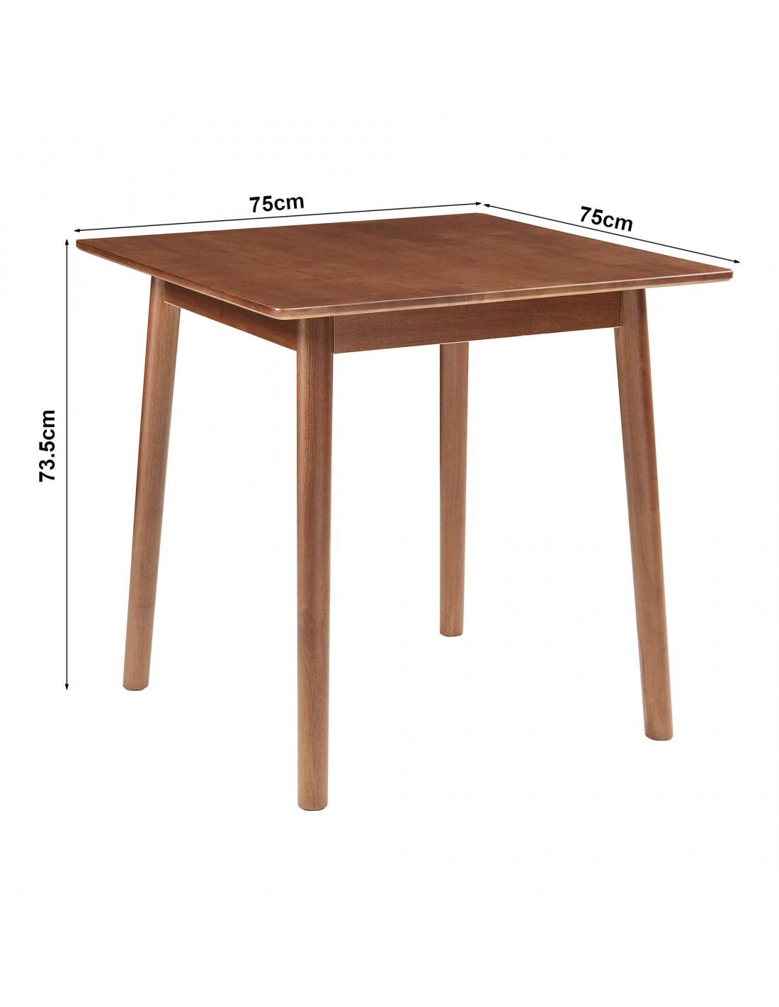 Spisebord udført i et design af valnøddefarvet gummitræ. Spisebordet måler 73,5 cm i højden og 75 x 75 cm i bredde og dybde.