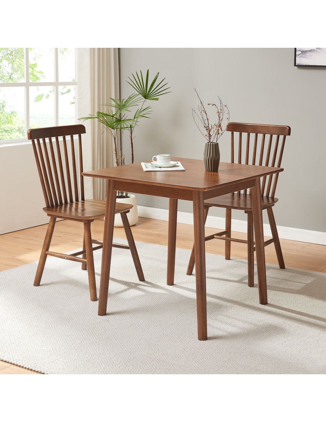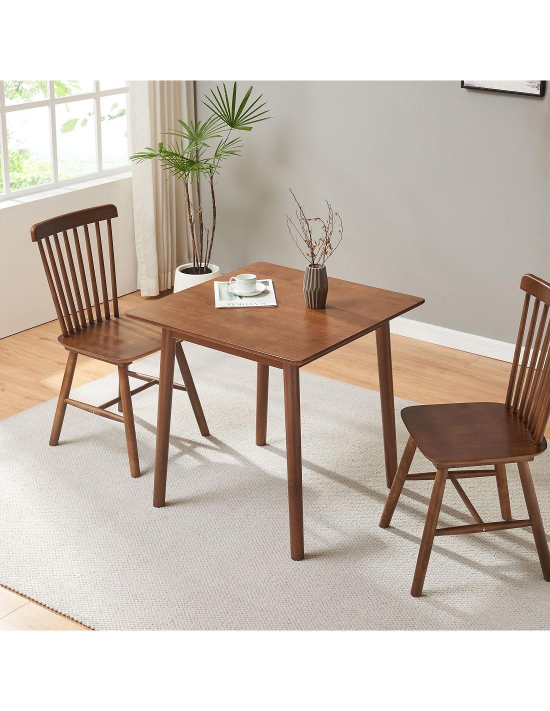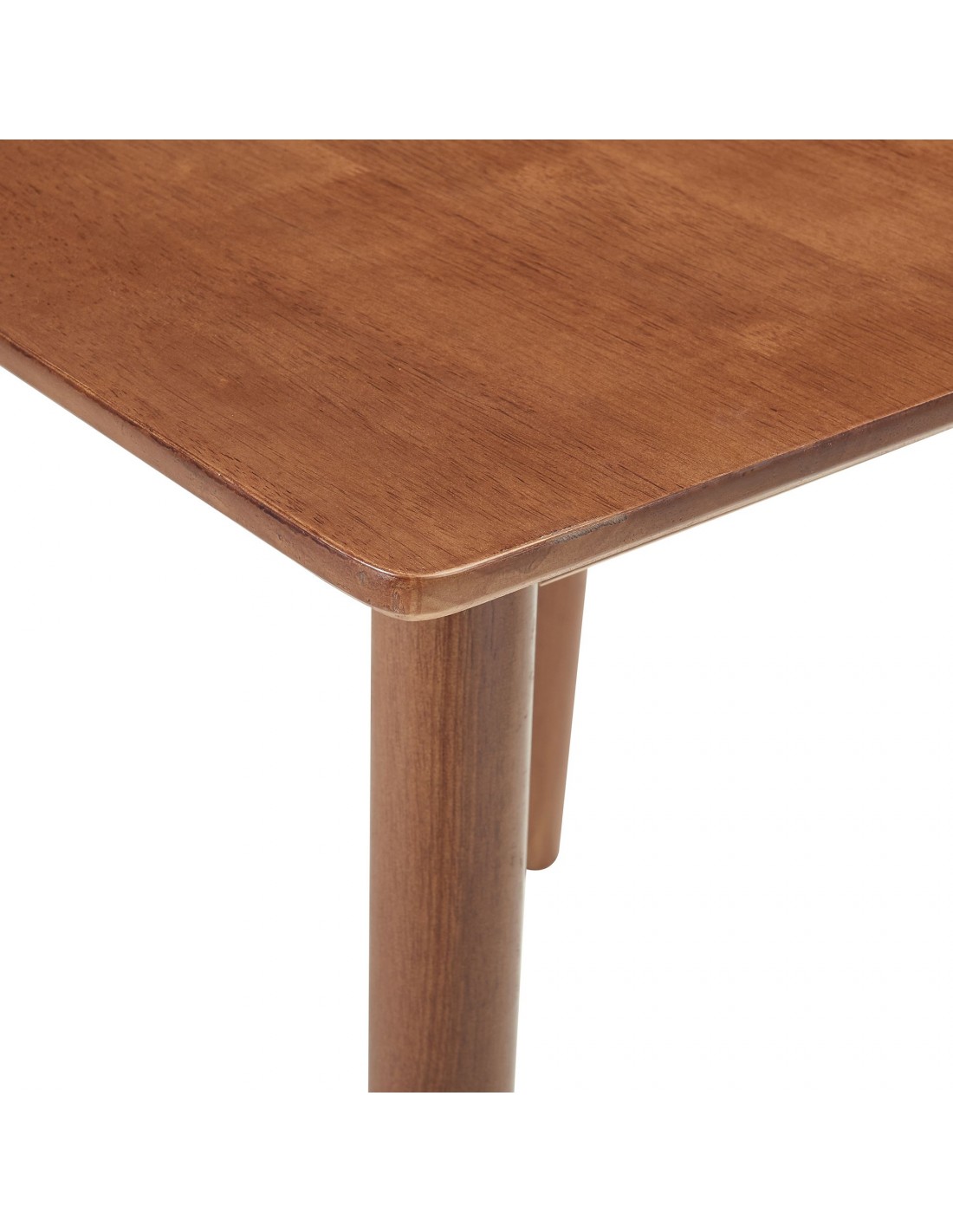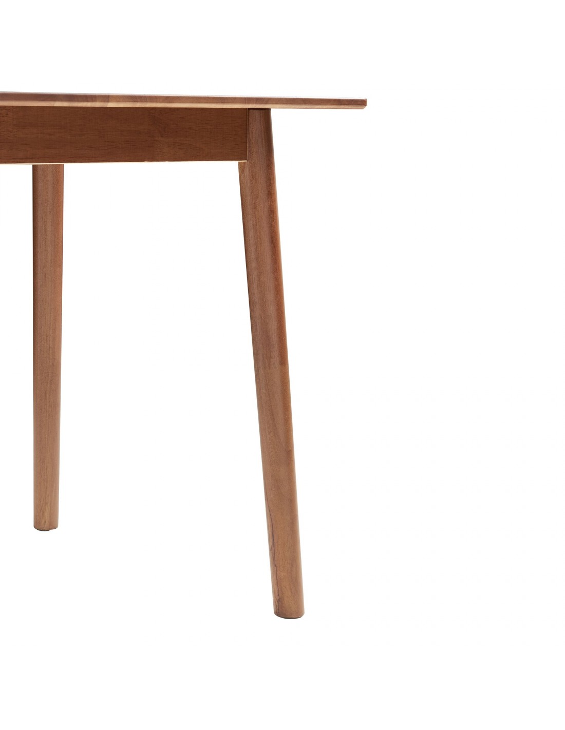 Spisebord udført i et design af valnøddefarvet gummitræ. Spisebordet måler 73,5 cm i højden og 75 x 75 cm i bredde og dybde.