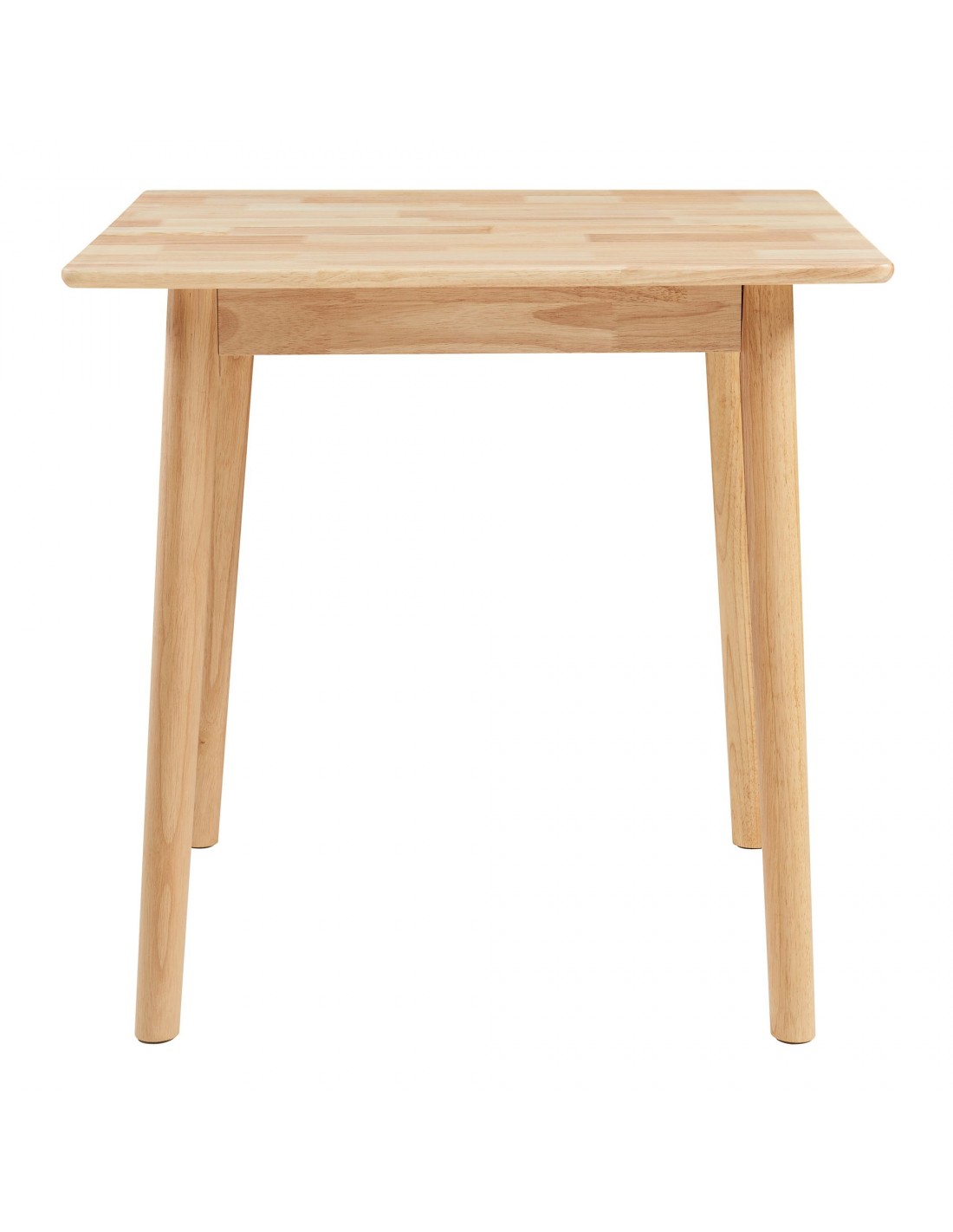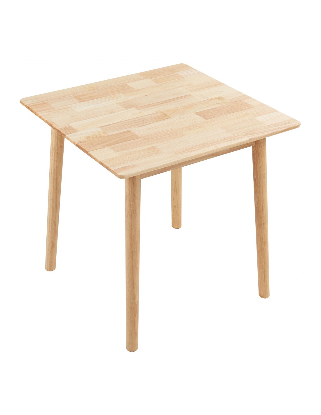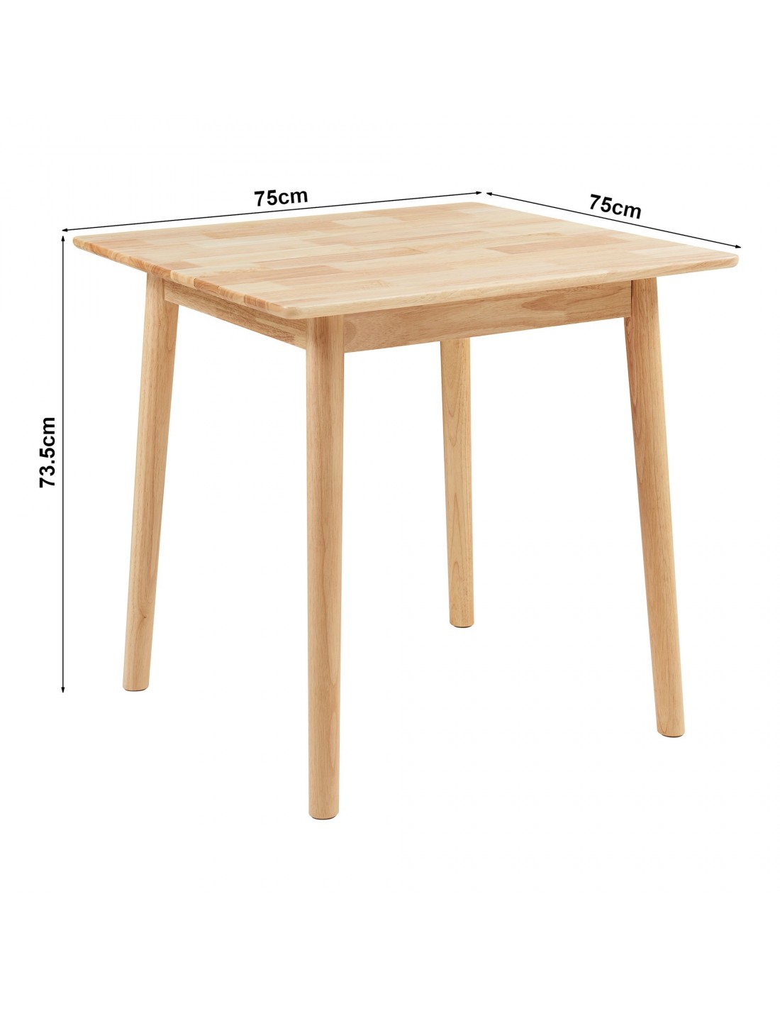 Spisebord udført i et design af naturfarvet gummitræ. Spisebordet måler 73,5 cm i højden og 75 x 75 cm i bredde og dybde.