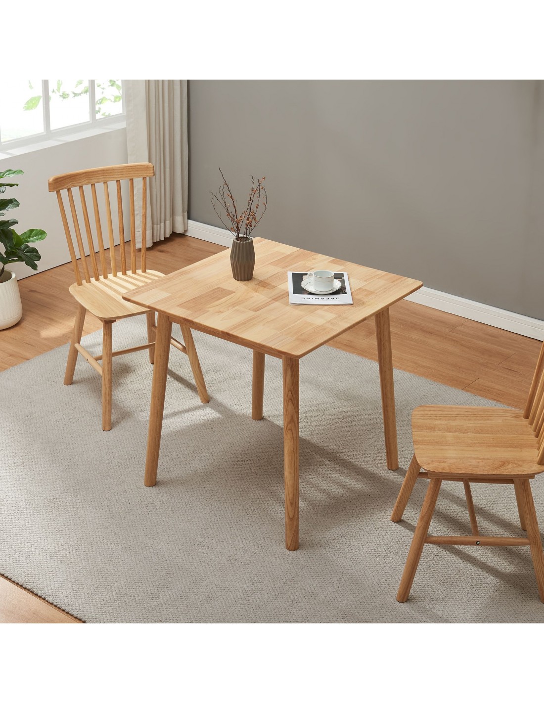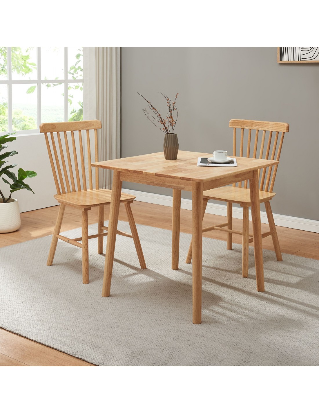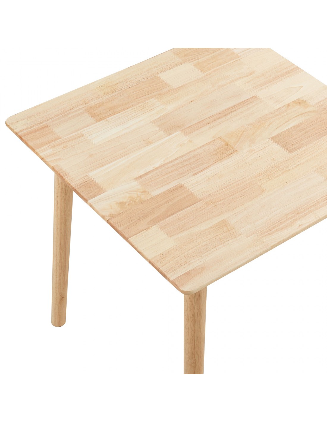 Spisebord udført i et design af naturfarvet gummitræ. Spisebordet måler 73,5 cm i højden og 75 x 75 cm i bredde og dybde.