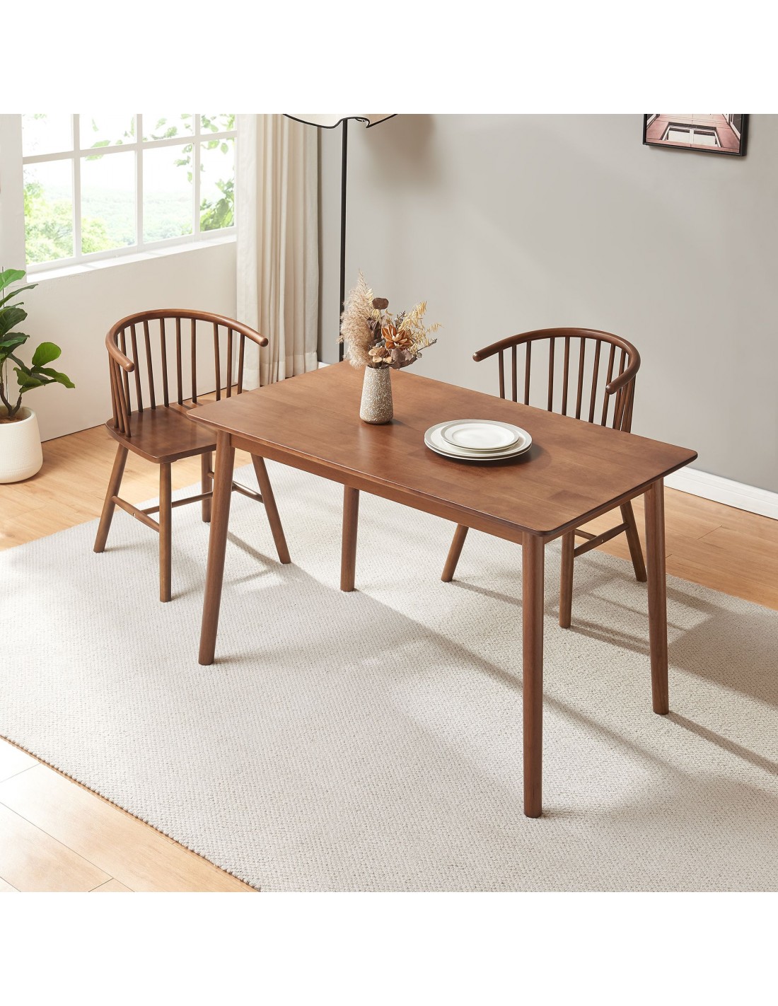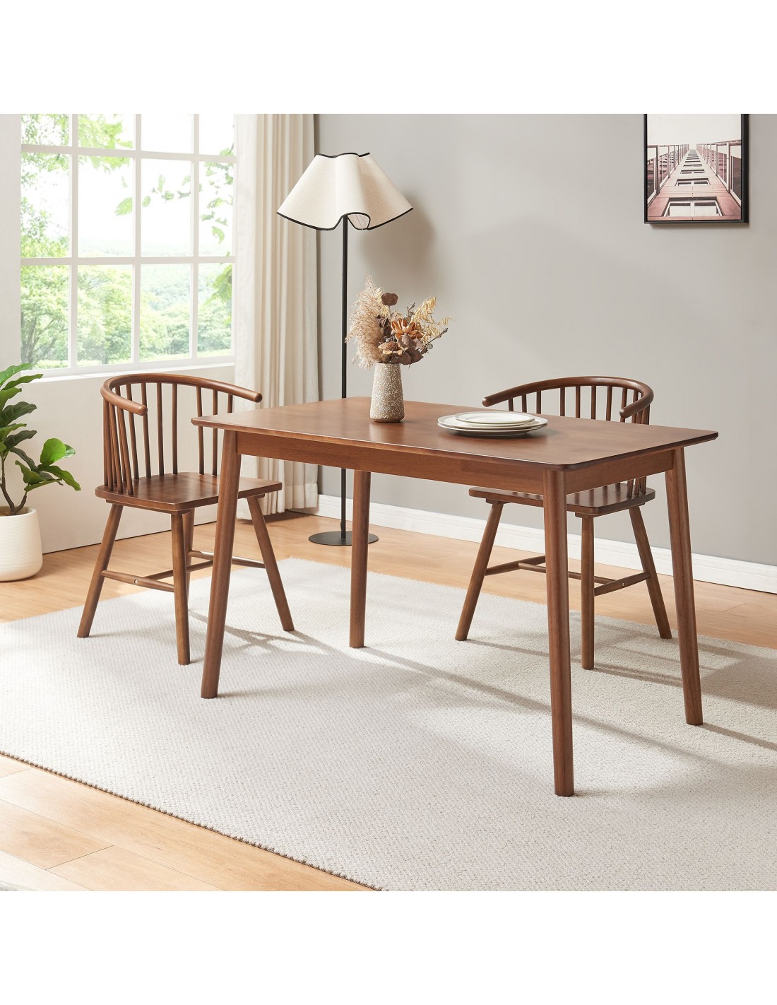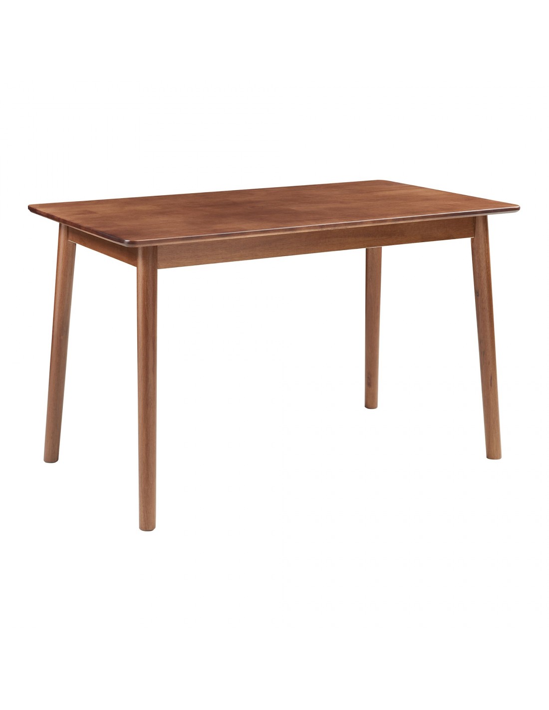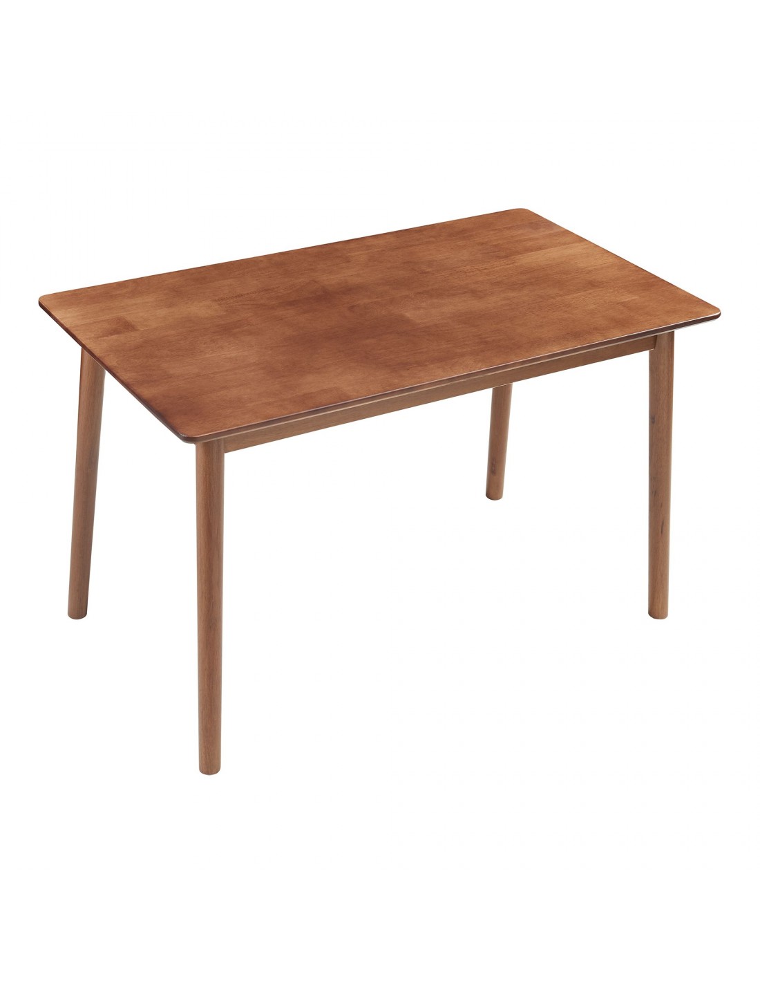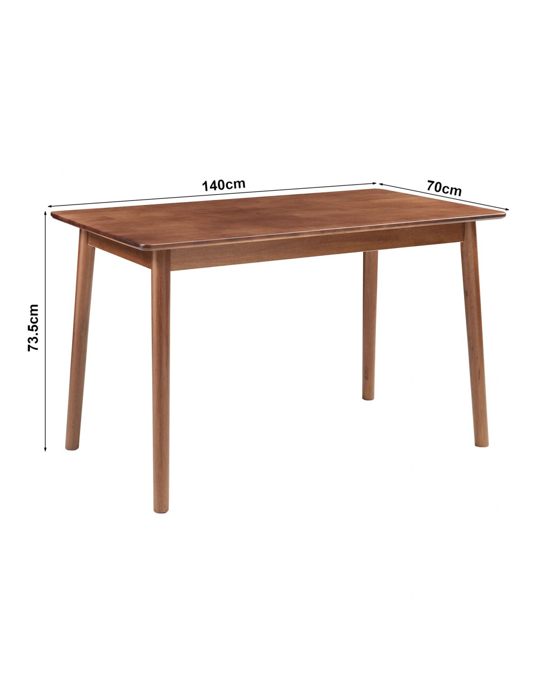 Spisebord udført i et design af valnøddefarvet gummitræ. Spisebordet måler 73,5 cm i højden og 140 x 70 cm i bredde og dybde.