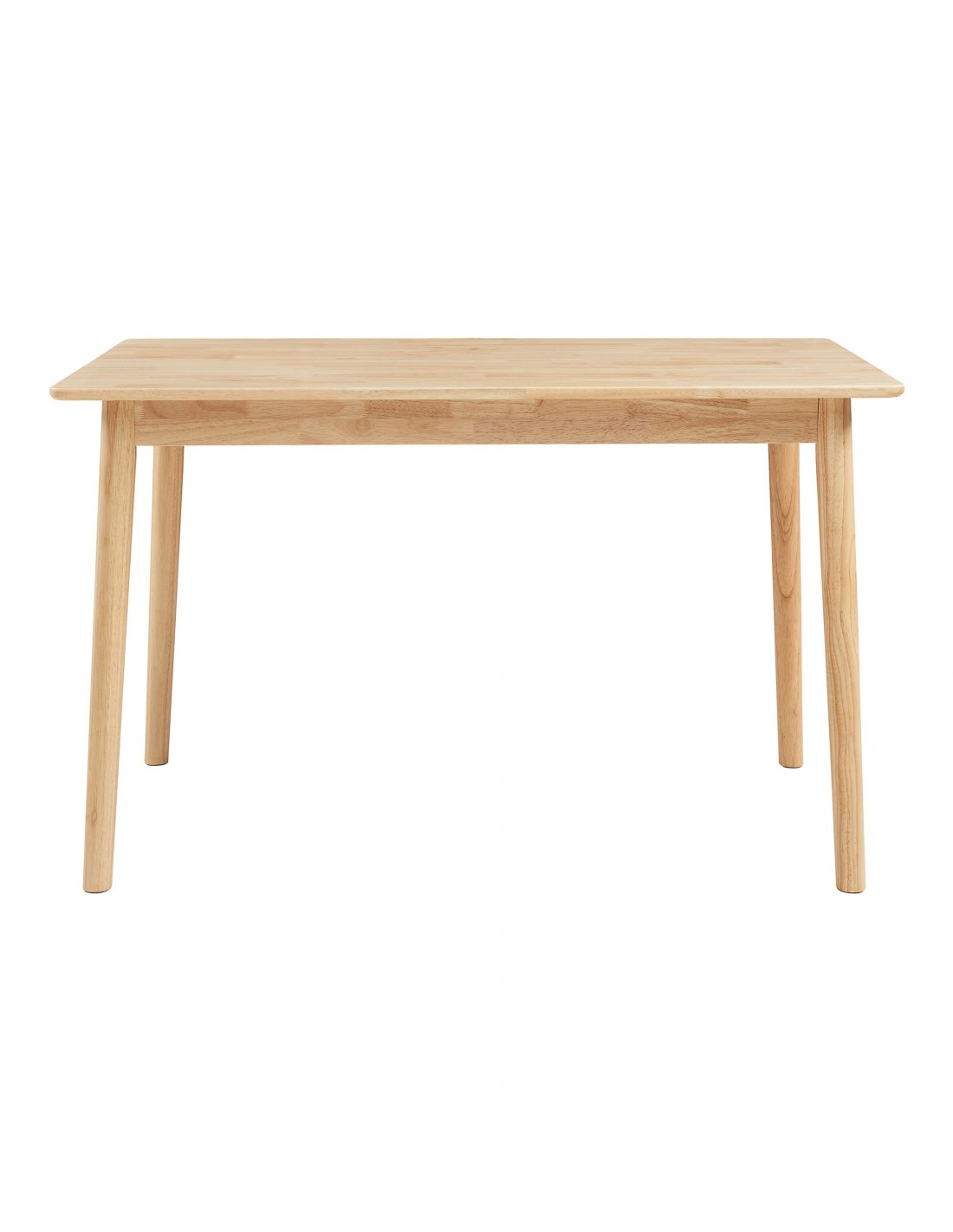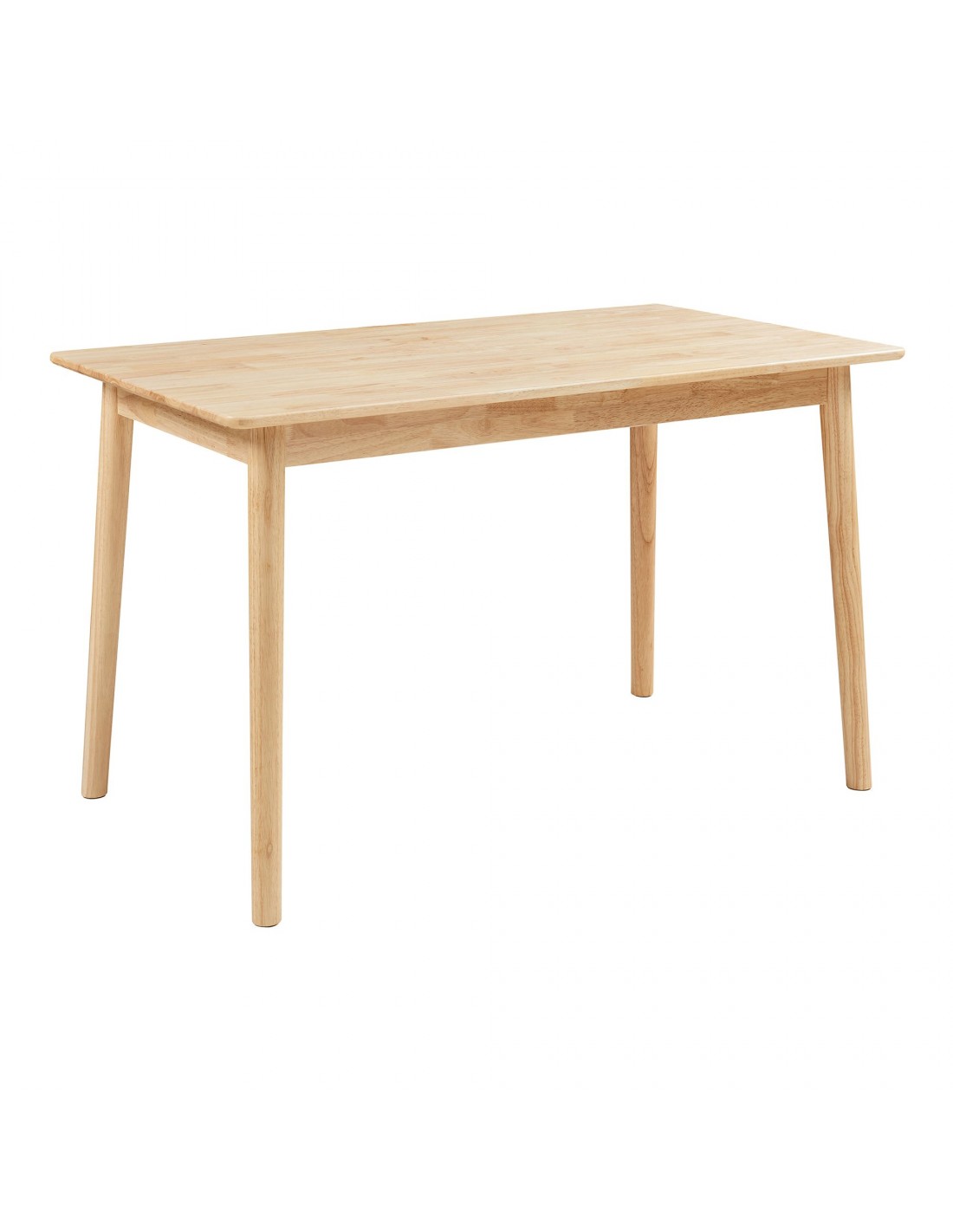 Spisebord udført i et design af naturfarvet gummitræ. Spisebordet måler 73,5 cm i højden og 140 x 70 cm i bredde og dybde.