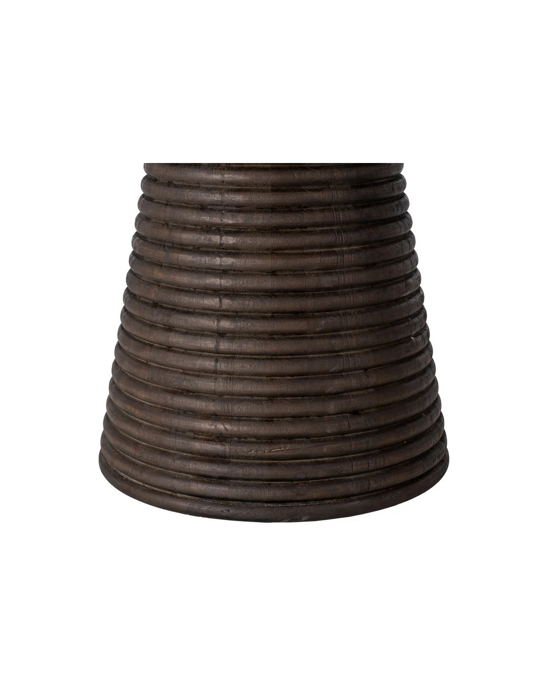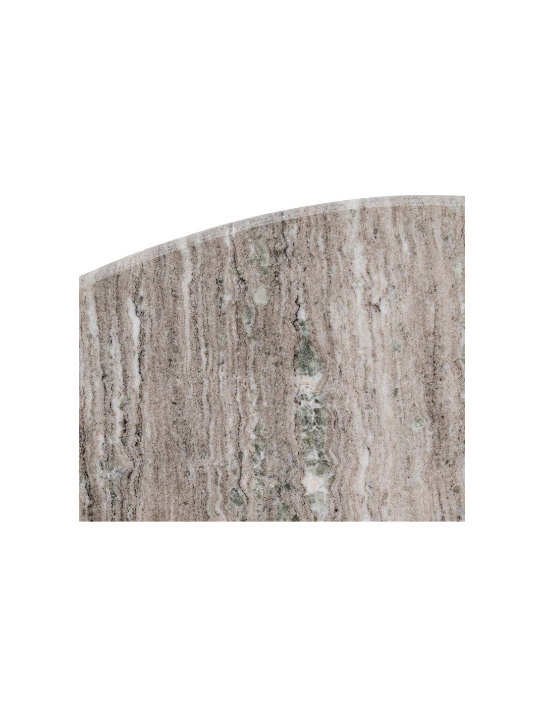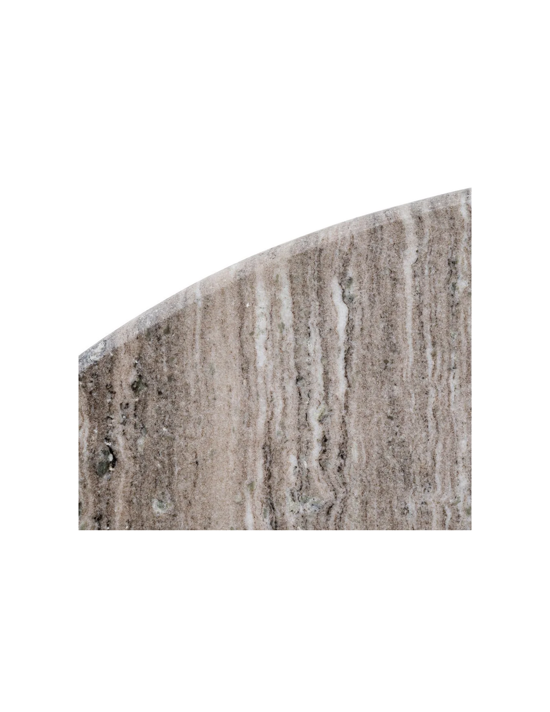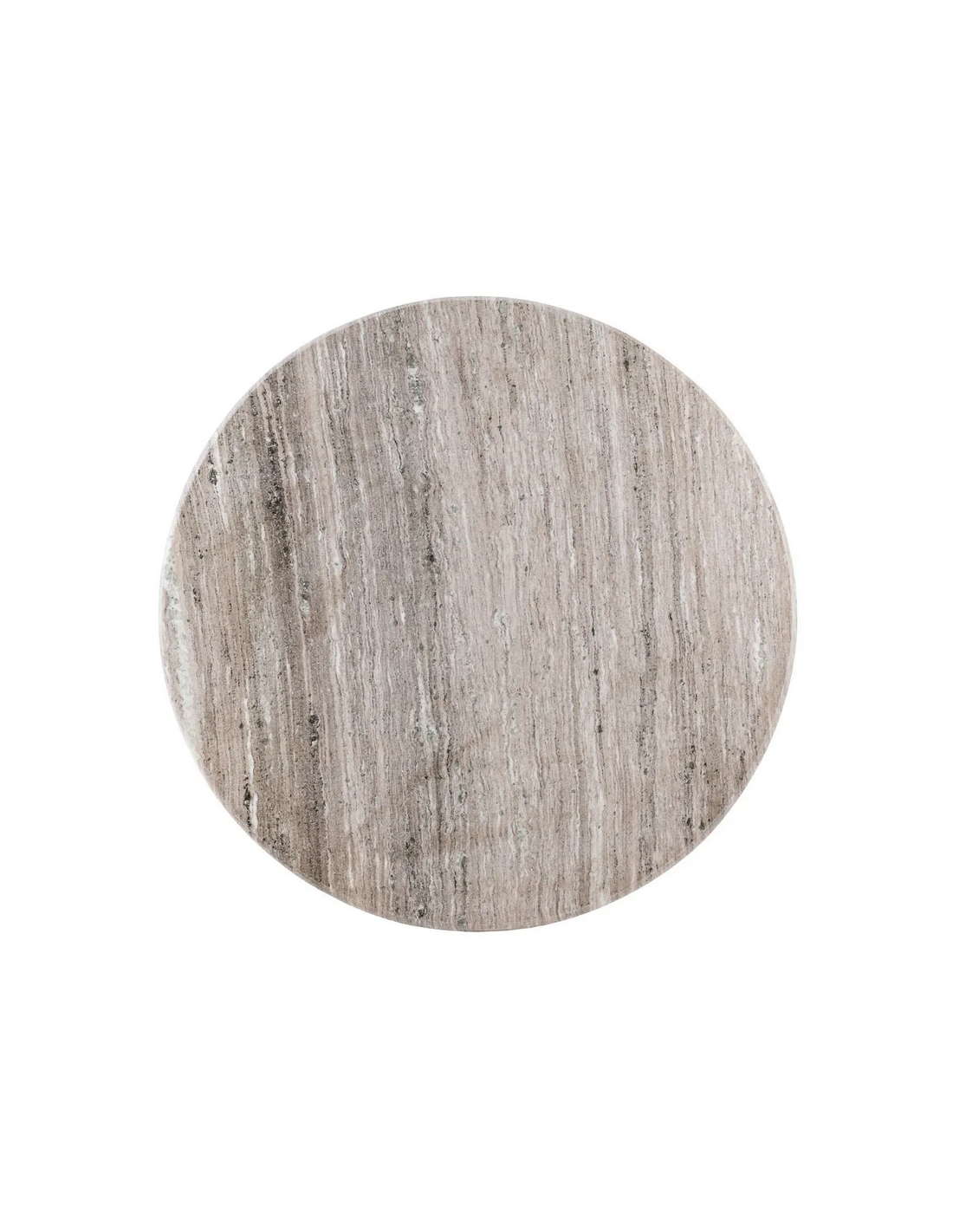 Rundt spisebord udført i et nordisk design af mørkebrun lakeret mangotræ og med bordplade i en smuk grå marmor. Spisebordet måler 76 cm i højden og 115 cm i diameter.